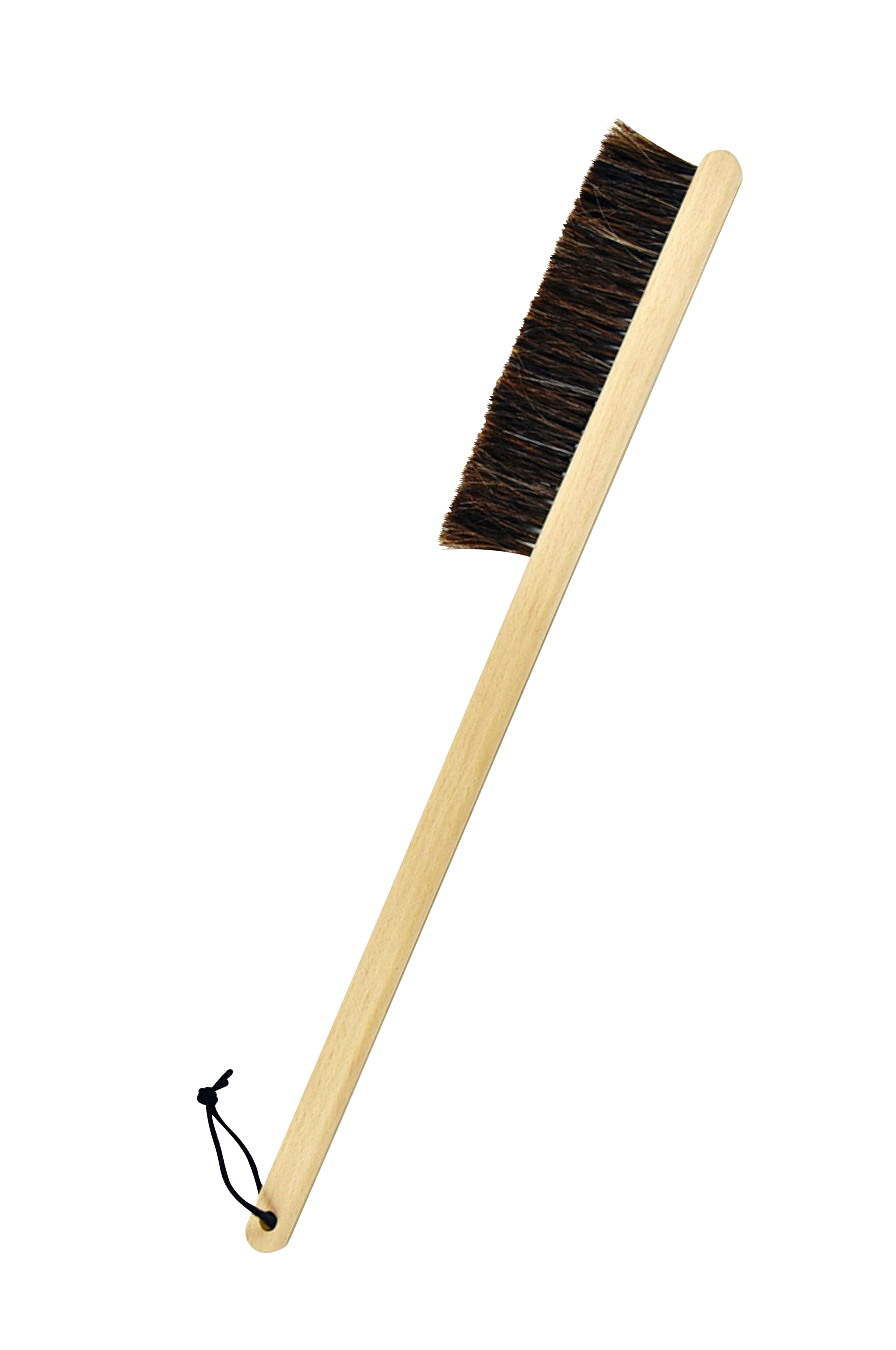 Lang og smal håndbørste. Fremstillet af varmebehandlet asketræ og hestehår. Størrelse 1x7,5x62cm