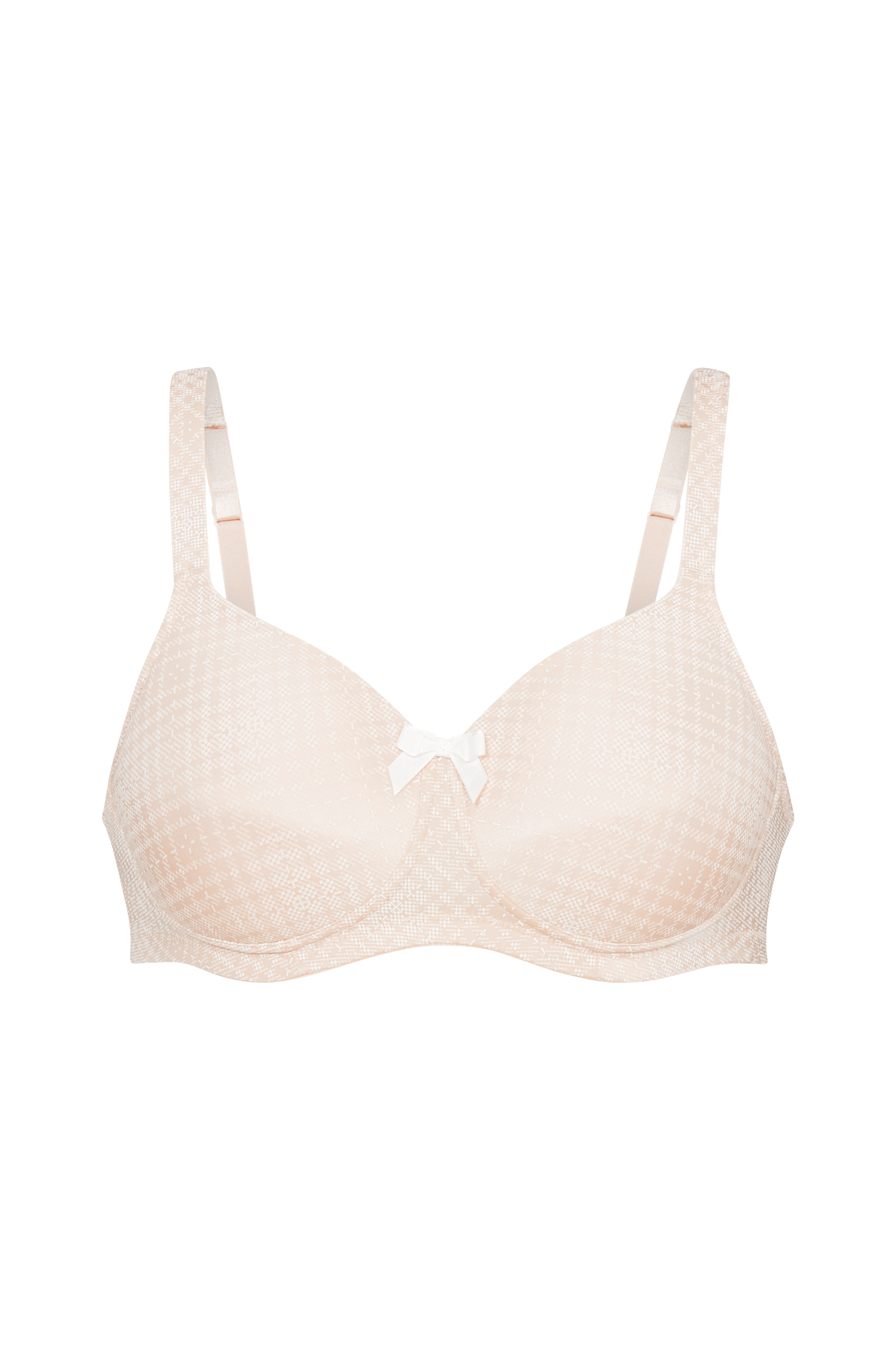 Protese-bh Caroline fra Anita Care. Flot, blød model uden bøjle med formpresset skål som har diskret mønster. Vatterede skulderstropper og for i mesh. Takket være det gennemtænkte design er den velegnet til dig, der har gennemgået en brystoperation, da den har lommer til brystprotese.