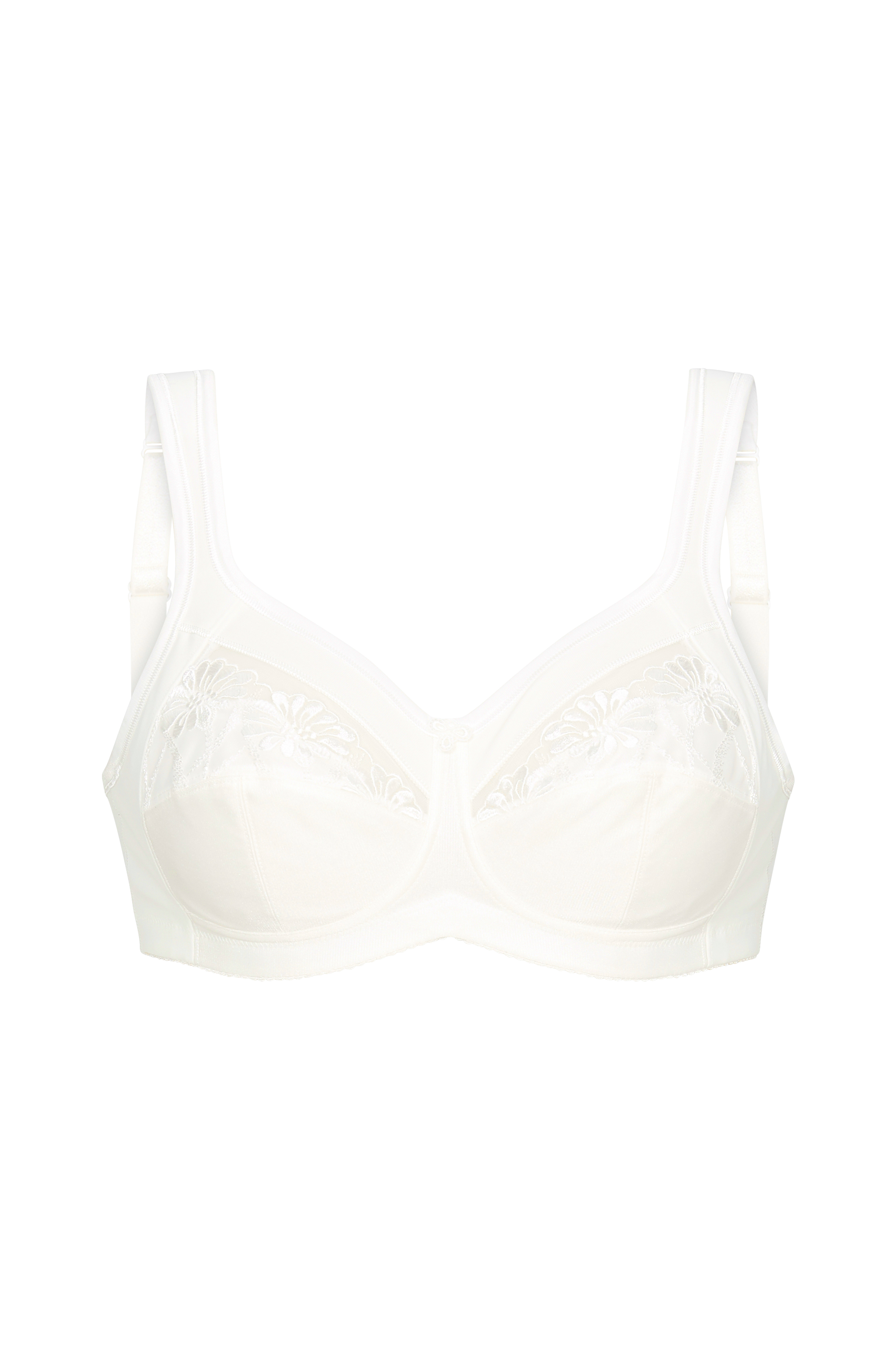 Protese-bh Safina fra Anita Care. Elegant og blød bh uden bøjle med skåle som har fin indsats af broderet mesh. Blødt jerseyfor samt lidt bredere, vatterede skulderstropper. Takket være det gennemtænkte design er den velegnet til dig, der har gennemgået en brystoperation, da den har lommer til brystprotese.