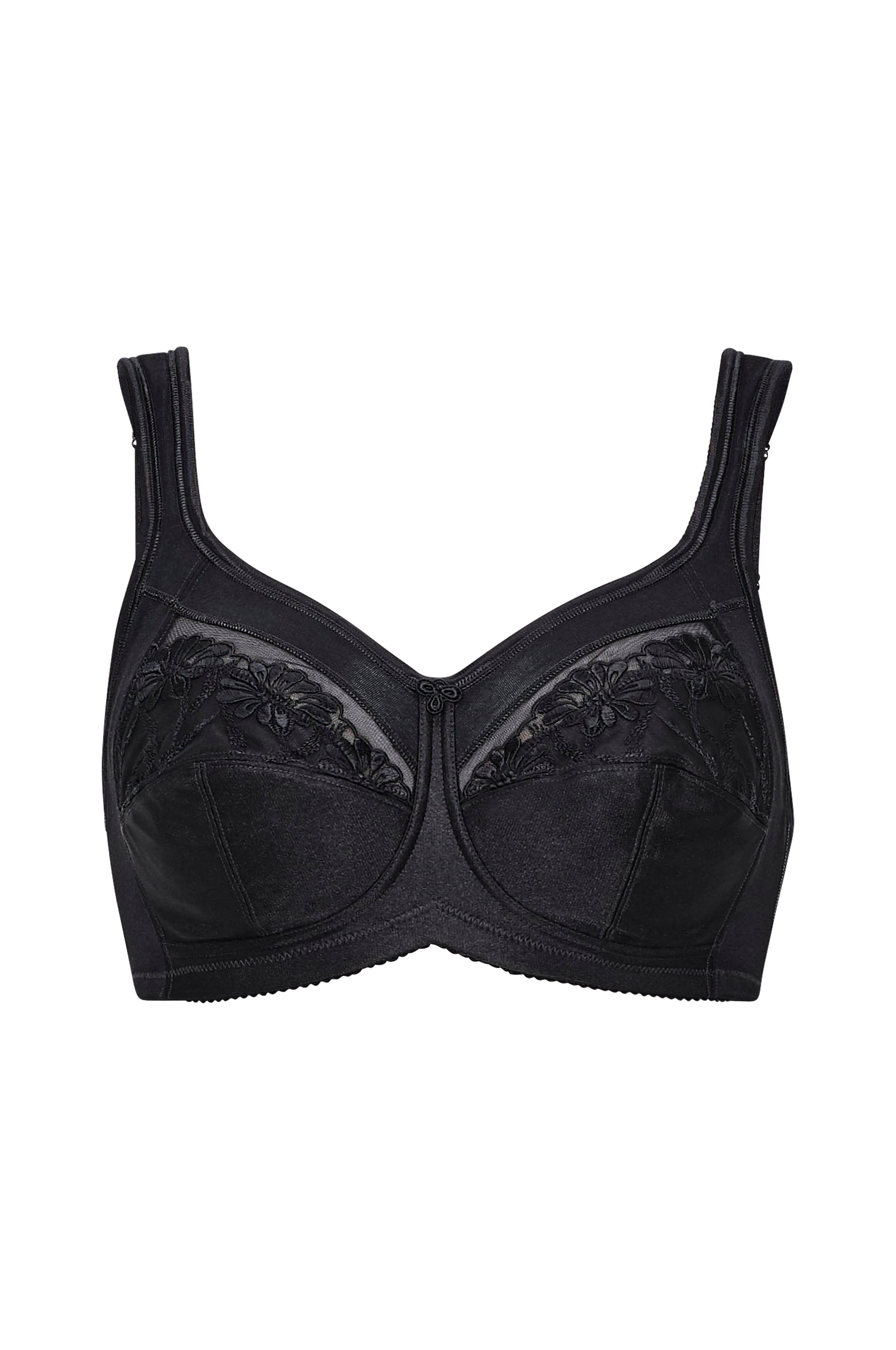 Protese-bh Safina fra Anita Care. Elegant og blød bh uden bøjle med skåle som har fin indsats af broderet mesh. Blødt jerseyfor samt lidt bredere, vatterede skulderstropper. Takket være det gennemtænkte design er den velegnet til dig, der har gennemgået en brystoperation, da den har lommer til brystprotese.