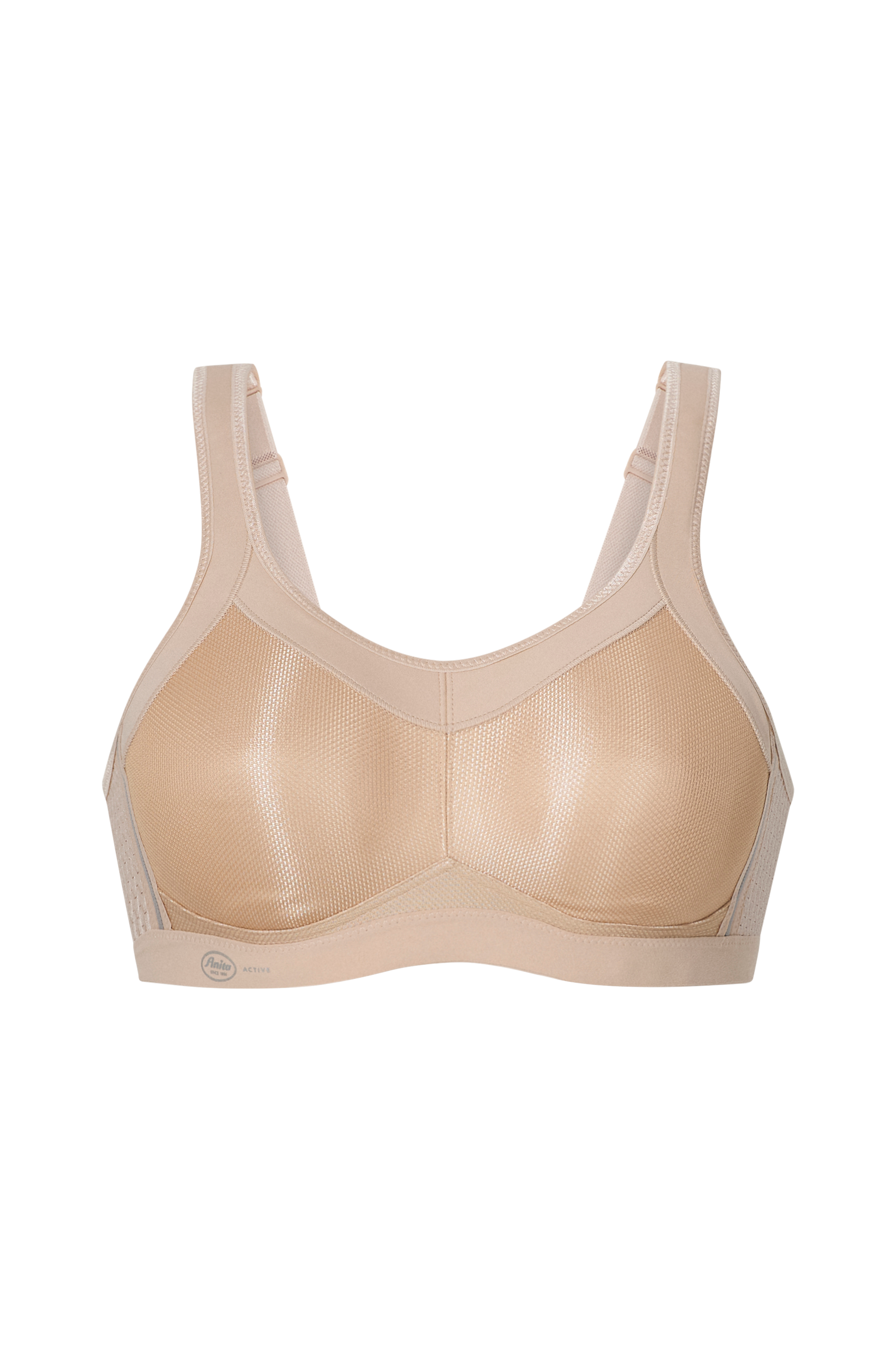 Sports-bh Momentum fra Anita er en utroligt behagelig bh med syede skåle med usynlige sømme som giver brystet en afrundet og fin form. Indvendigt beklædt i et blødt materiale som lader huden ånde og samtidigt tørrer sved væk, så du føler dig tør og kølig under hele træningen. Regulerbare og vatterede skulderstropper for bedste pasform. Elastikbånd under brystet med regulerbar hægte- og mallelukning i ryggen. Perforeret jersey i ryggen for ekstra ventilation.