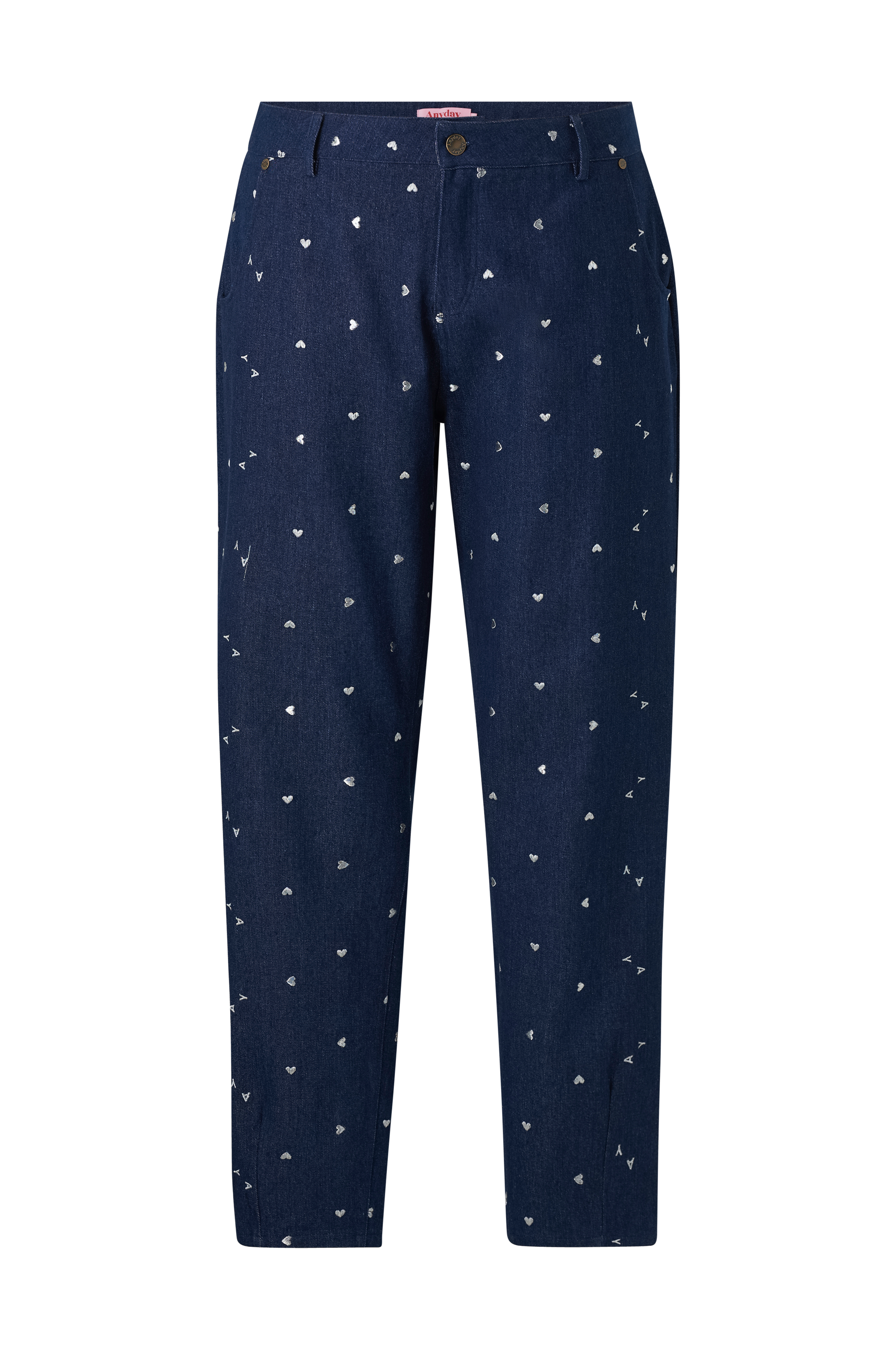 • Store størrelser• Model med sølvfarvede broderier overalt• Lommer foran og bagpå• Gylp med lynlås• Let indsnævrende benafslutning• Indre benlængde: 80 cm i størrelse 42