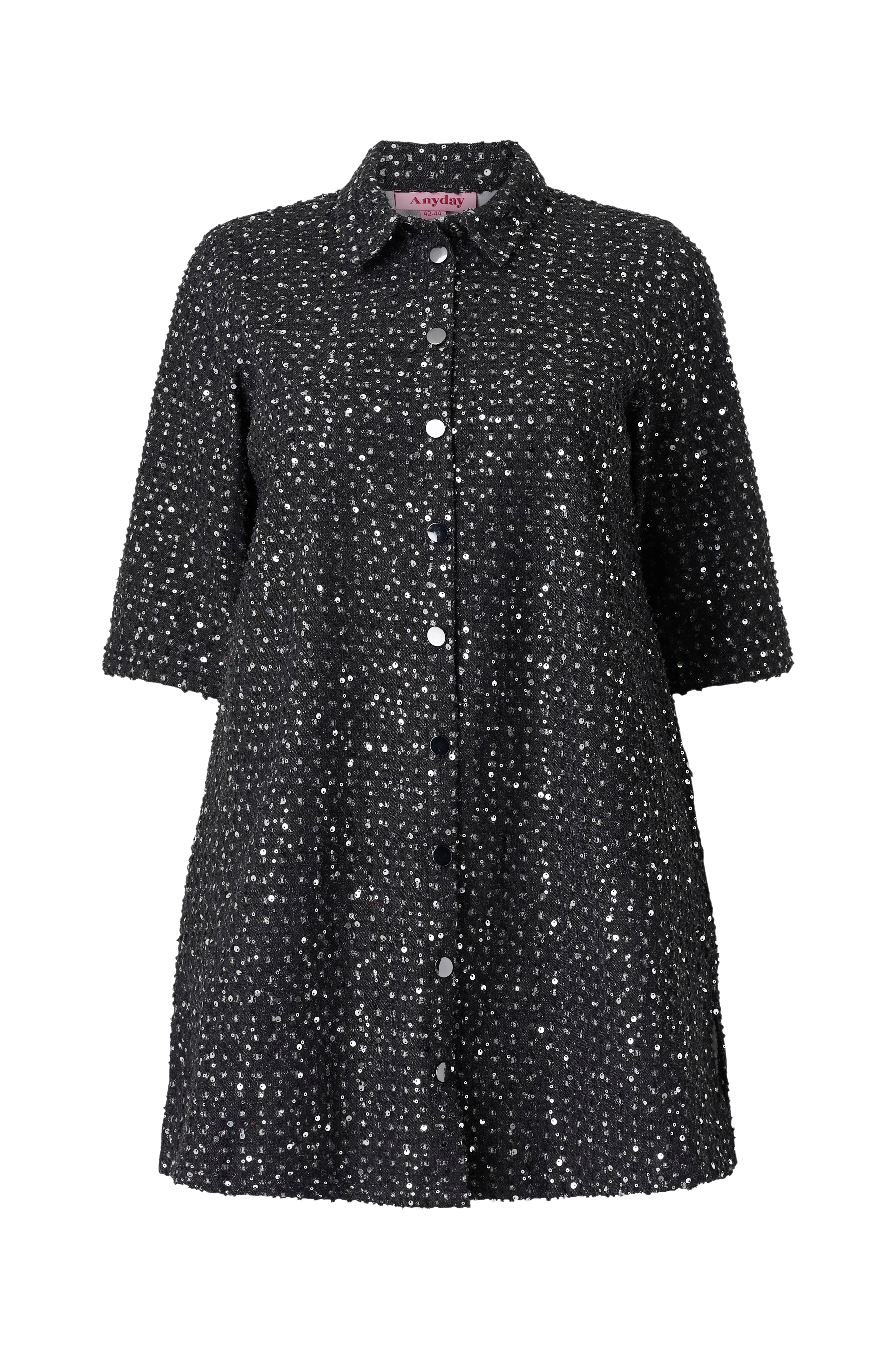 • Skjortekjole med pailleter og glitter• Trykknapper foran• Halvlange ærmer• Slids nede i siderne• Plusstørrelser• Længde: 95 cm i størrelse 42-44