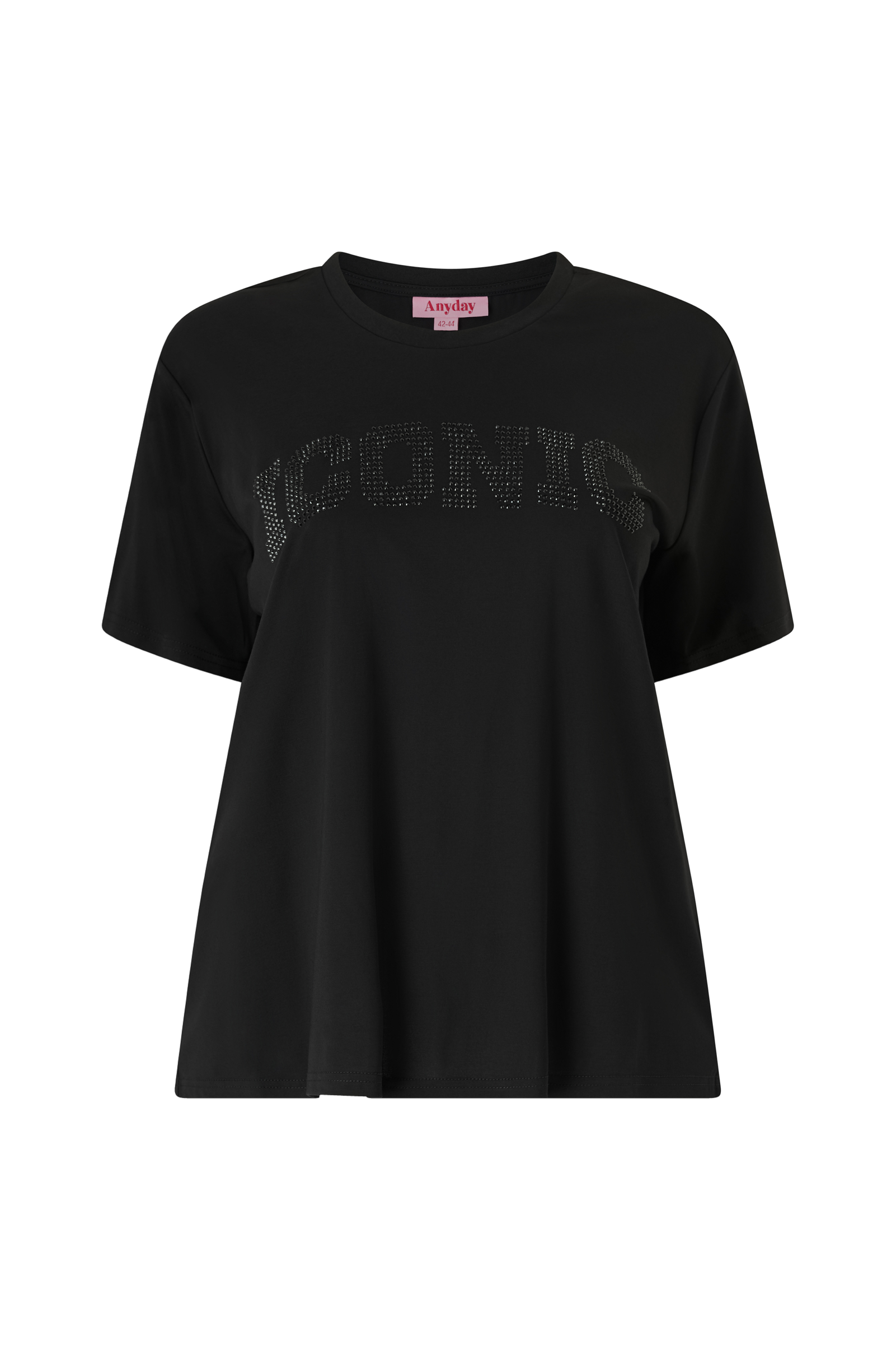 • T-shirt med rund halsudskæring• Tekst i rhinsten på brystet• Plusstørrelser