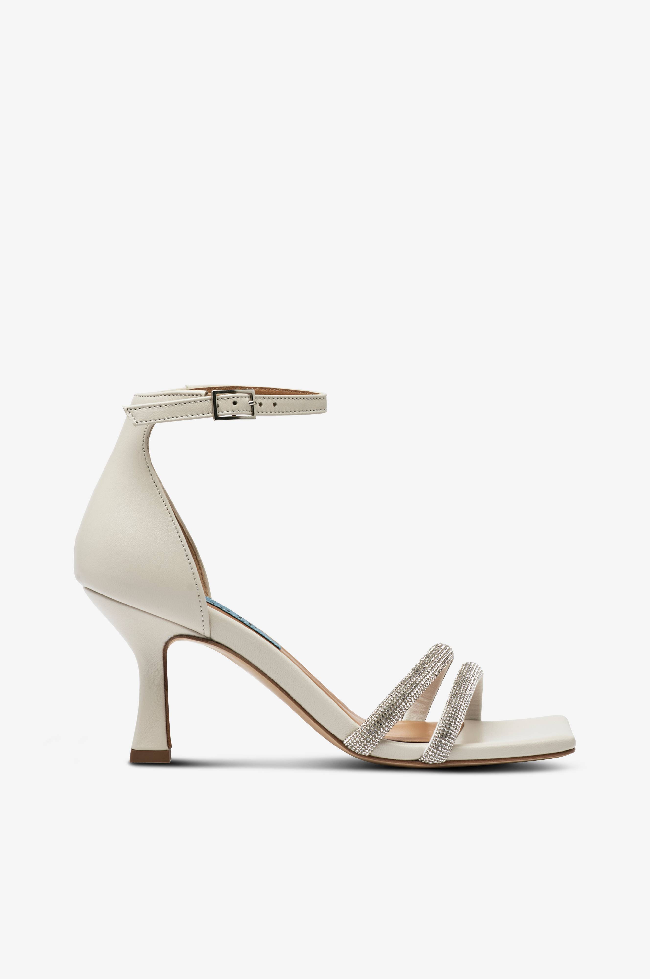• Firkantet snude• Dækket hæl• Remme med rhinsten foran• Justérbar rem ved anklen• Hælhøjde: 7,5 cm