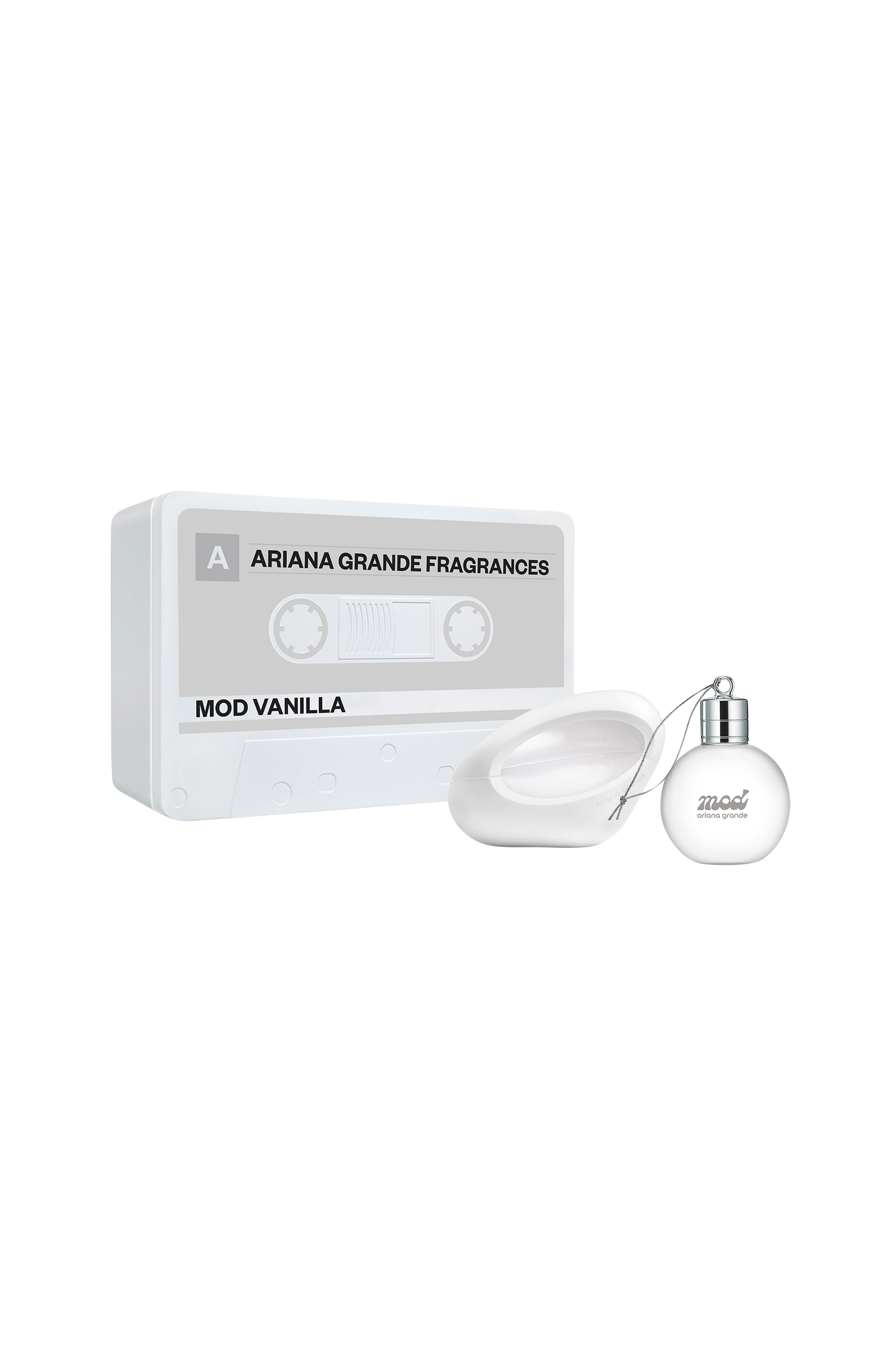 Mod Vanilla Gift Set - den perfekte gave til alle, der elsker Ariana Grande og hendes duft MOD Vanilla EdP! Dette gavesæt indeholder parfumen og en shower gel med samme duft. MOD Vanilla Gift Set ligner et sejt kassettebånd og er en perfekt julegave.