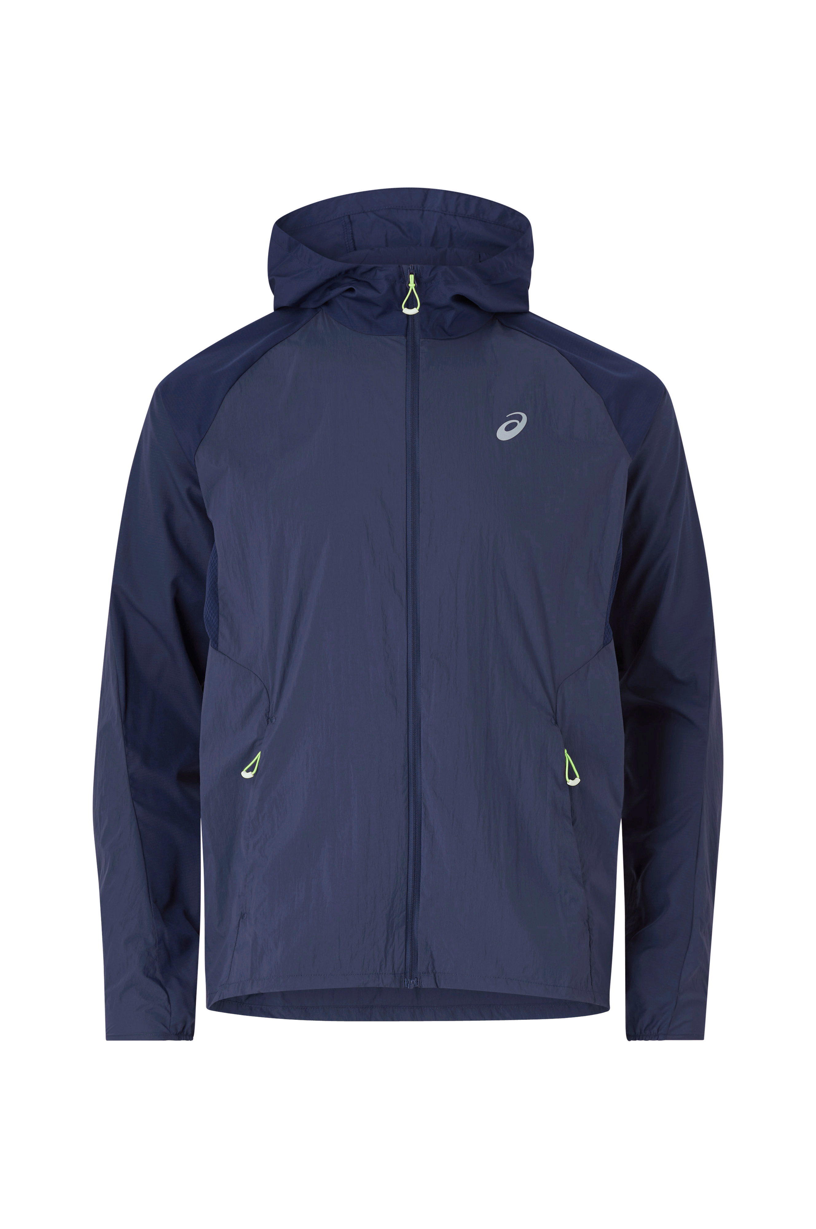En alsidig jakke, der er designet til at beskytte mod regn og vind, og som nemt kan tages af og pakkes ned i sidelommen under løb.