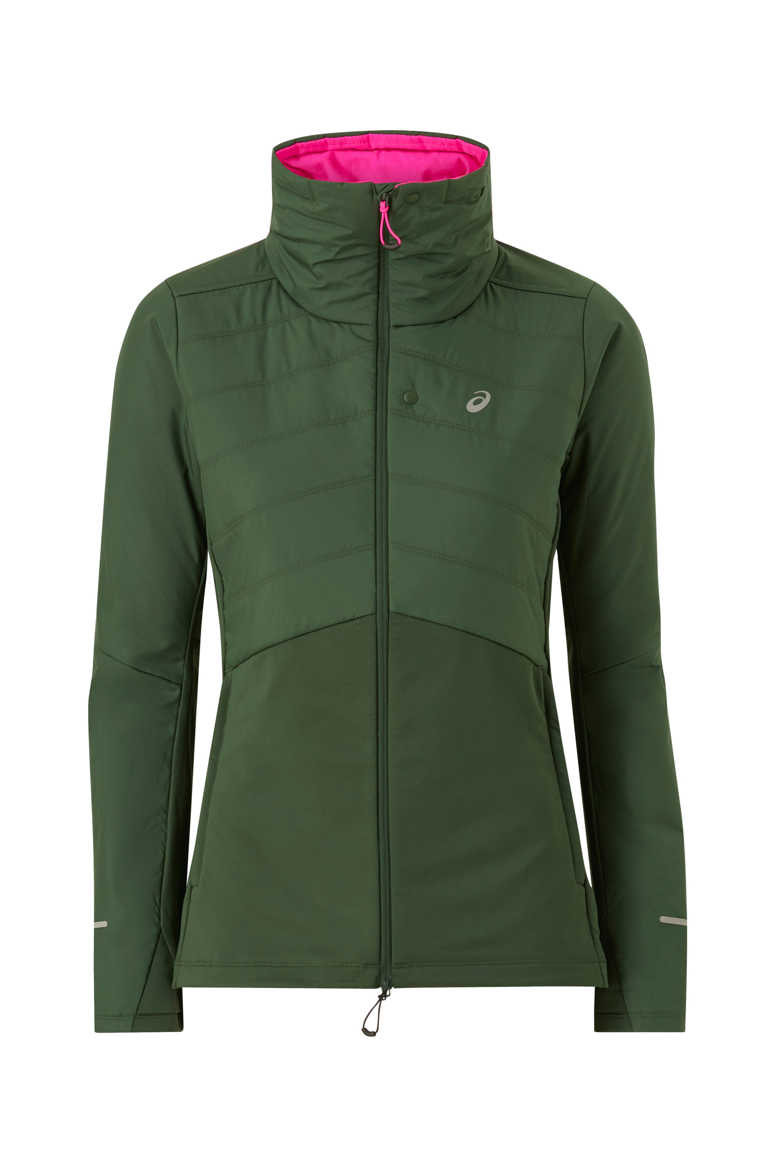 • En let vatteret løbejakke til løb i koldere vejr. • Vindafvisende, vandafvisende materiale • Høj krave med inderside i fleece • Fuld længde lynlås • To lommer foran med lynlås • To meshlommer nede bagved • Ventilation på ryggen med to lange lynlåse • Træksnørre ved nederste kant • Reflekterende detaljer