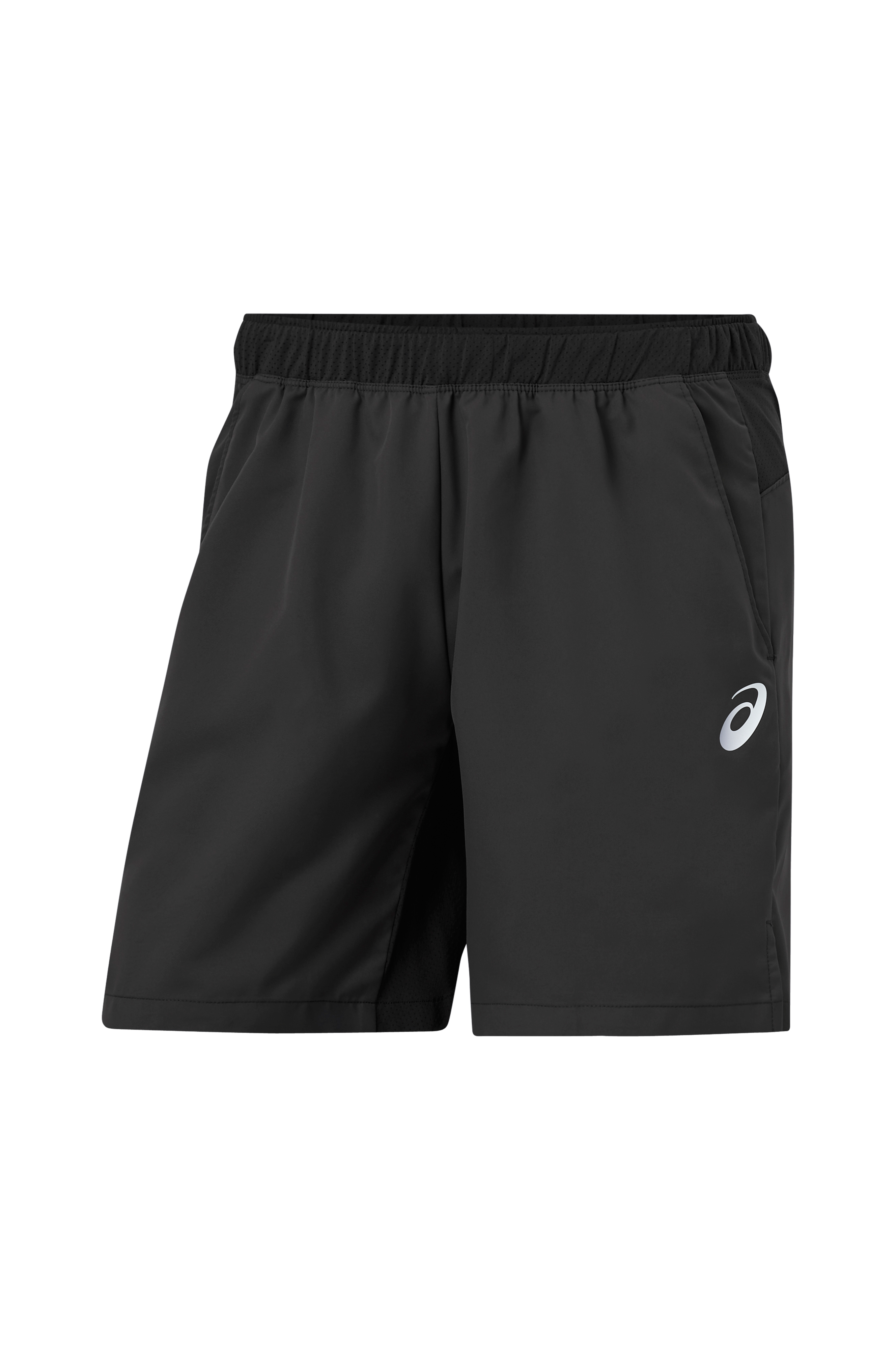 Træningsshorts i vævet materiale med ventilerende meshpanel under taljen bagpå. Elastisk talje med indvendig løbegang. To lommer foran. Materialet er hurtigtørrende og fugttransporterende.
