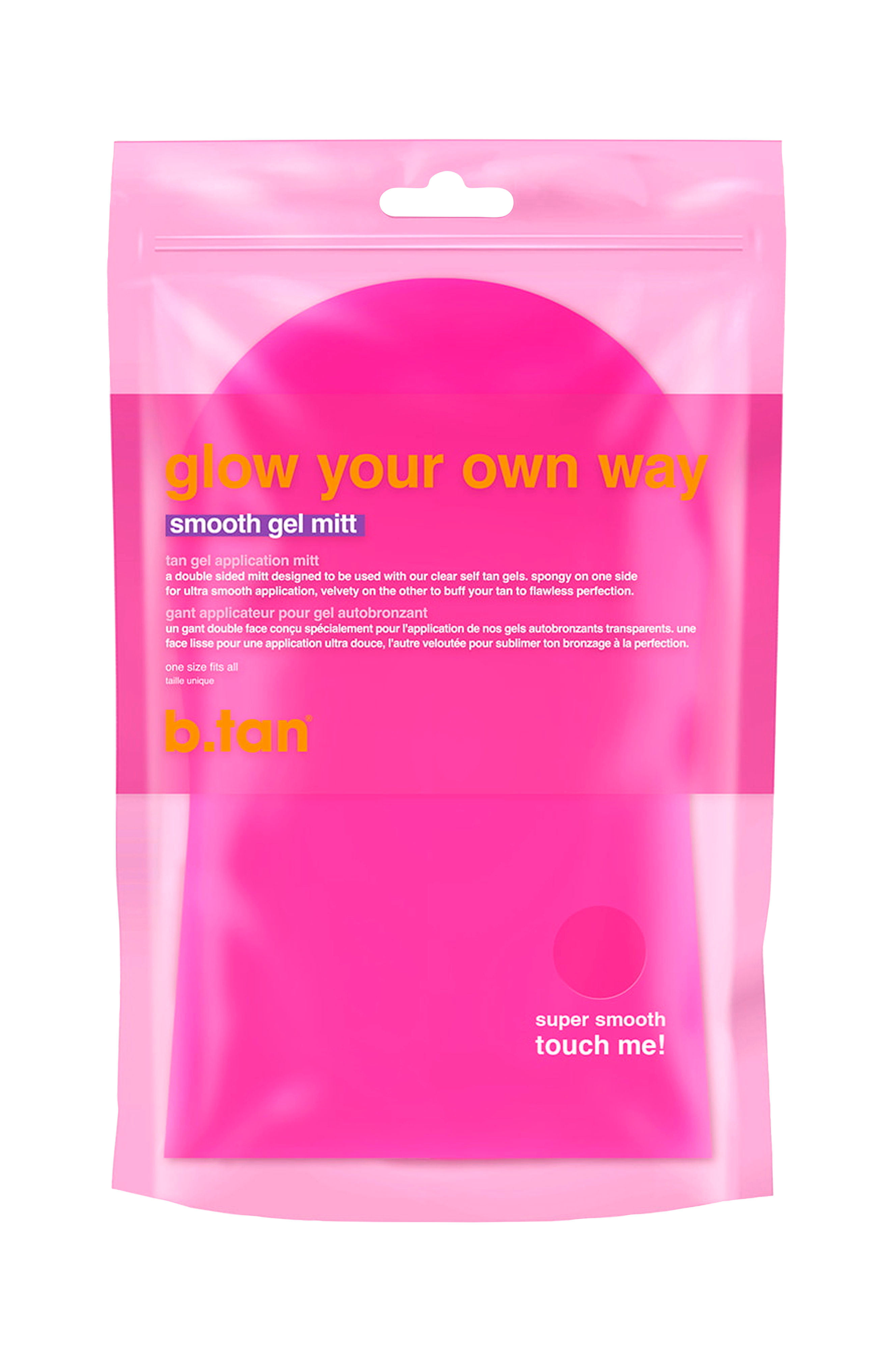 Glow Your Own Way Smooth Gel Mitt er en applikatorhandske designet til selvbrunergel for at undgå pletter på hænderne. Handsken er eksklusiv for Glow Your Own Way-kollektionen og hjælper med at opnå en jævn og fejlfri selvbruner. Den ene side er lavet af glat neopren, mens den anden side er blødt fløjl. Handsken kan vaskes og genbruges. Lad den lufttørre.