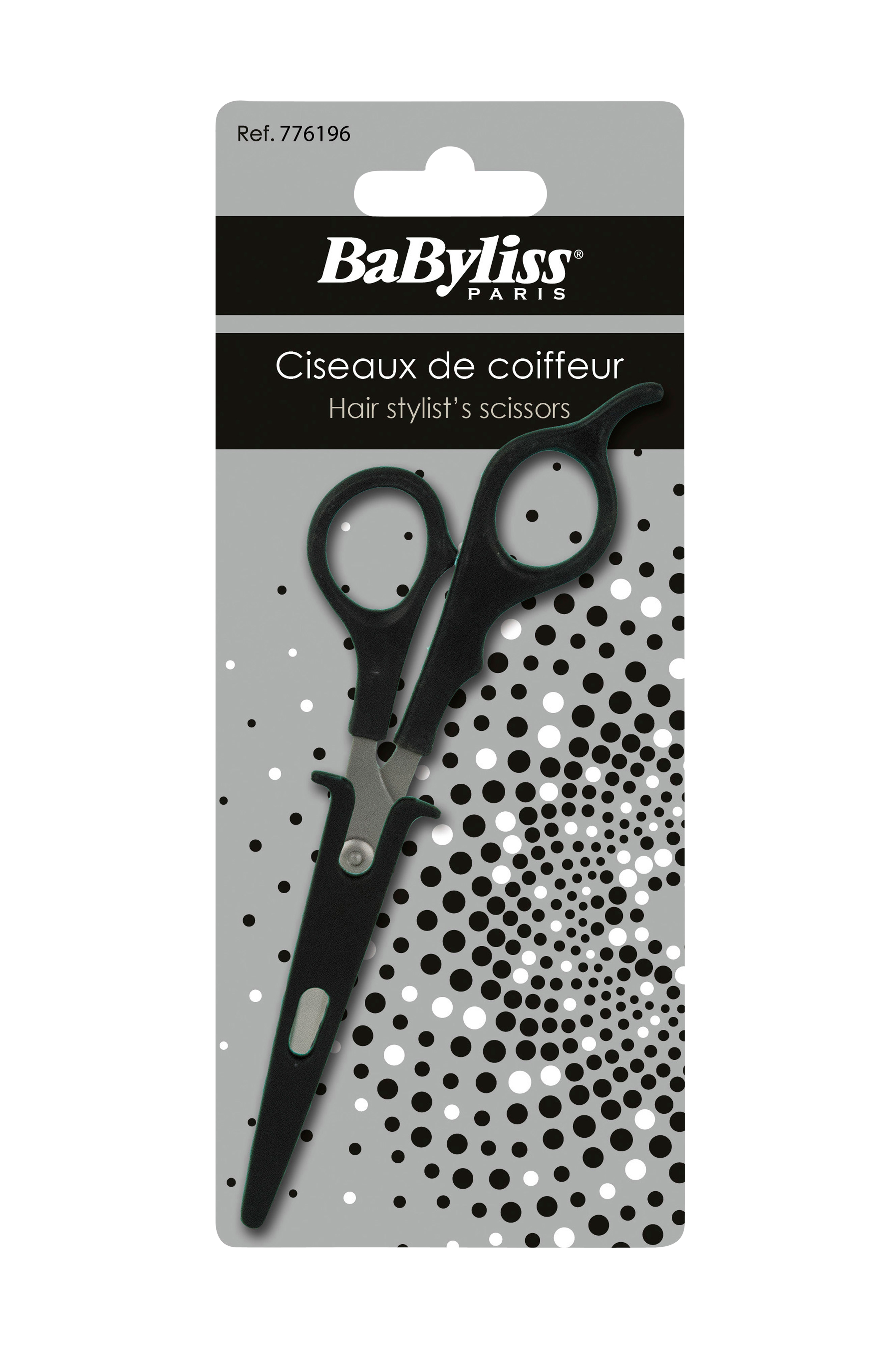 Frisørsaks med fingerstøtte. De fintandede klinger forhindrer at håret glider under klipningen, og fingerstøtten giver øget brugerkomfort. Den er slebet med kvalitetsteknik for at få den perfekte æg og behandlet mod korrosion for at holde længere.