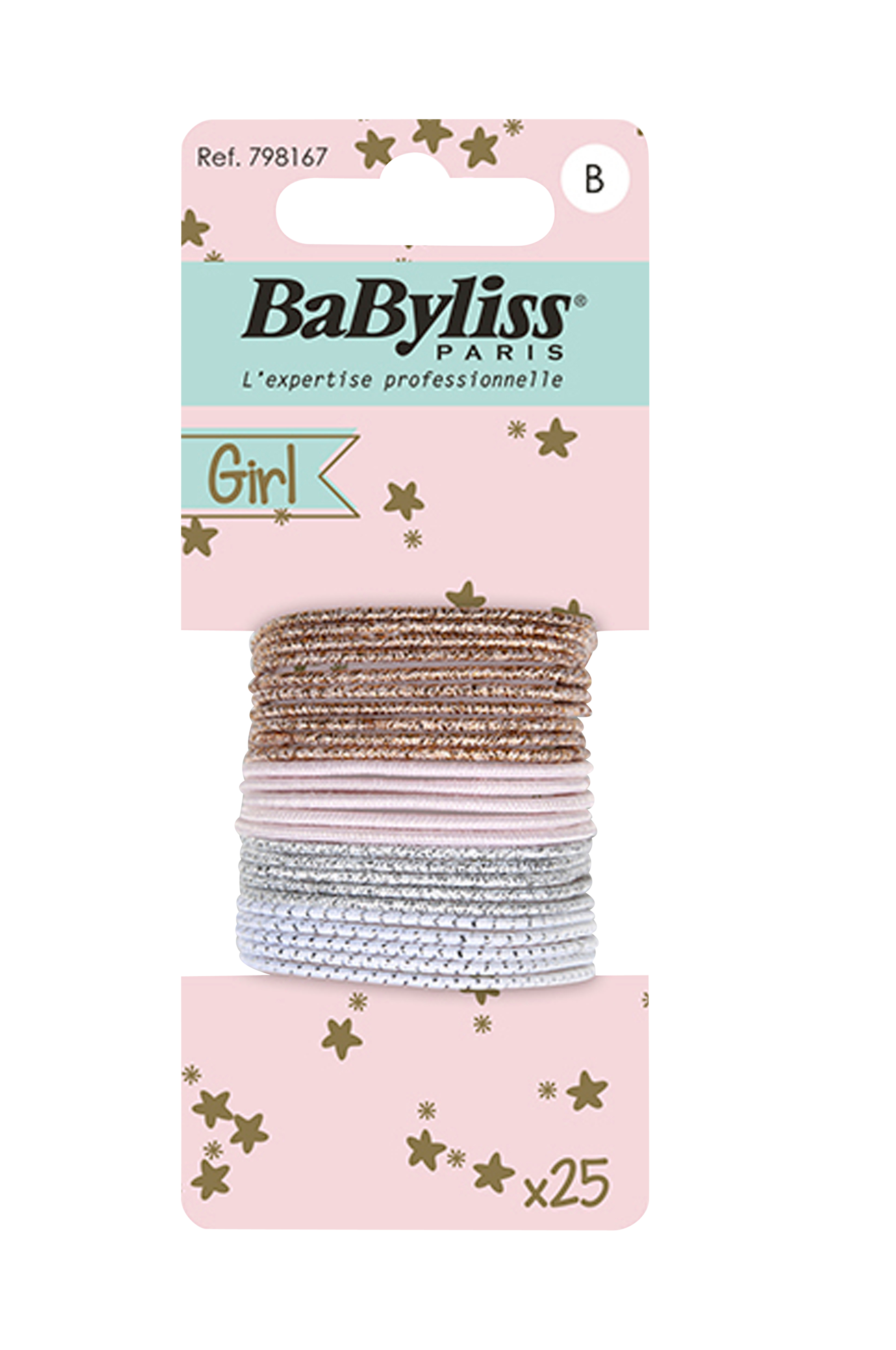 25-pak glitrende hårelastiker til børn i guld/sølv/bronze/rosa.