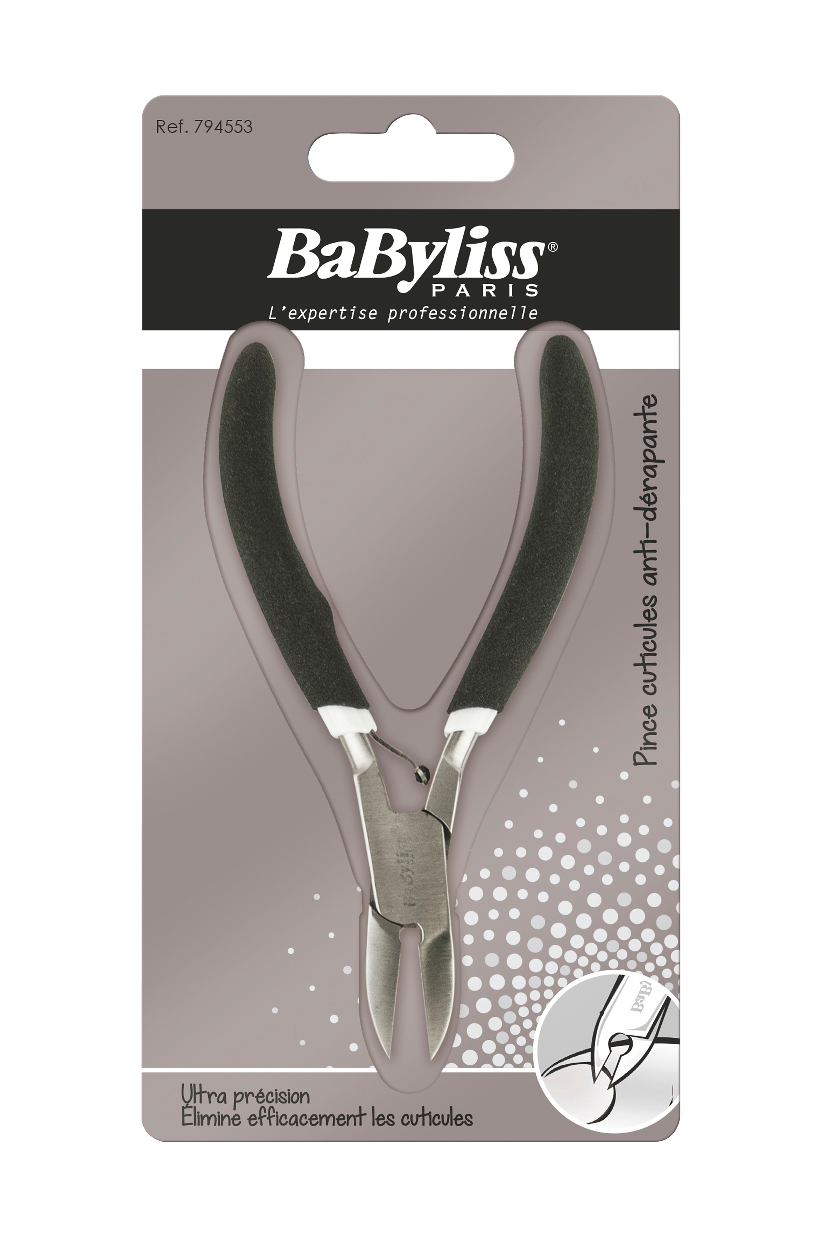 Takket være tangens form, klipper tangen fra BaByliss neglebåndene perfekt. Det skridsikre skaft giver perfekt greb.