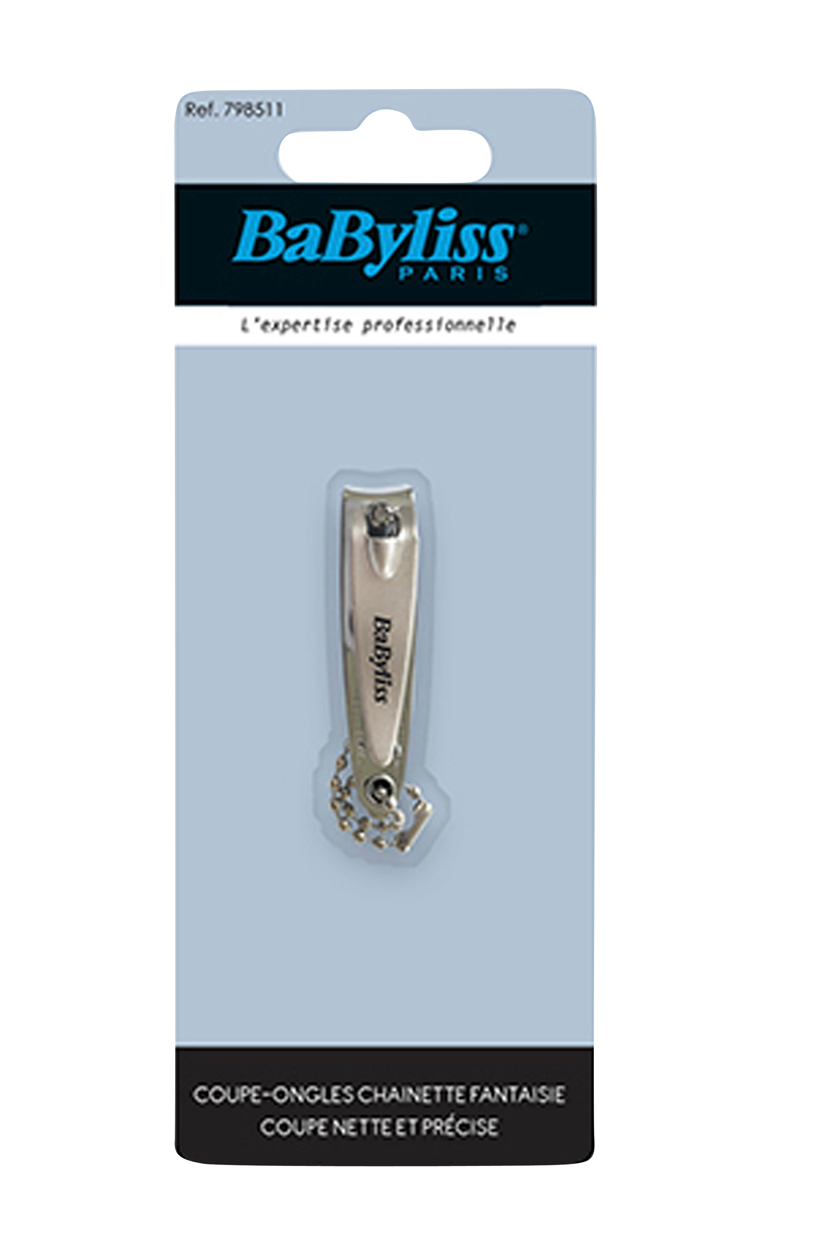 Lille fingernegleklipper med kæde, der klipper neglene ensartet og præcist. Særligt velegnet til fingerneglene. Den har en neglefil til at folde ud, som former neglen, samt en lille kæde. Lommeformat.