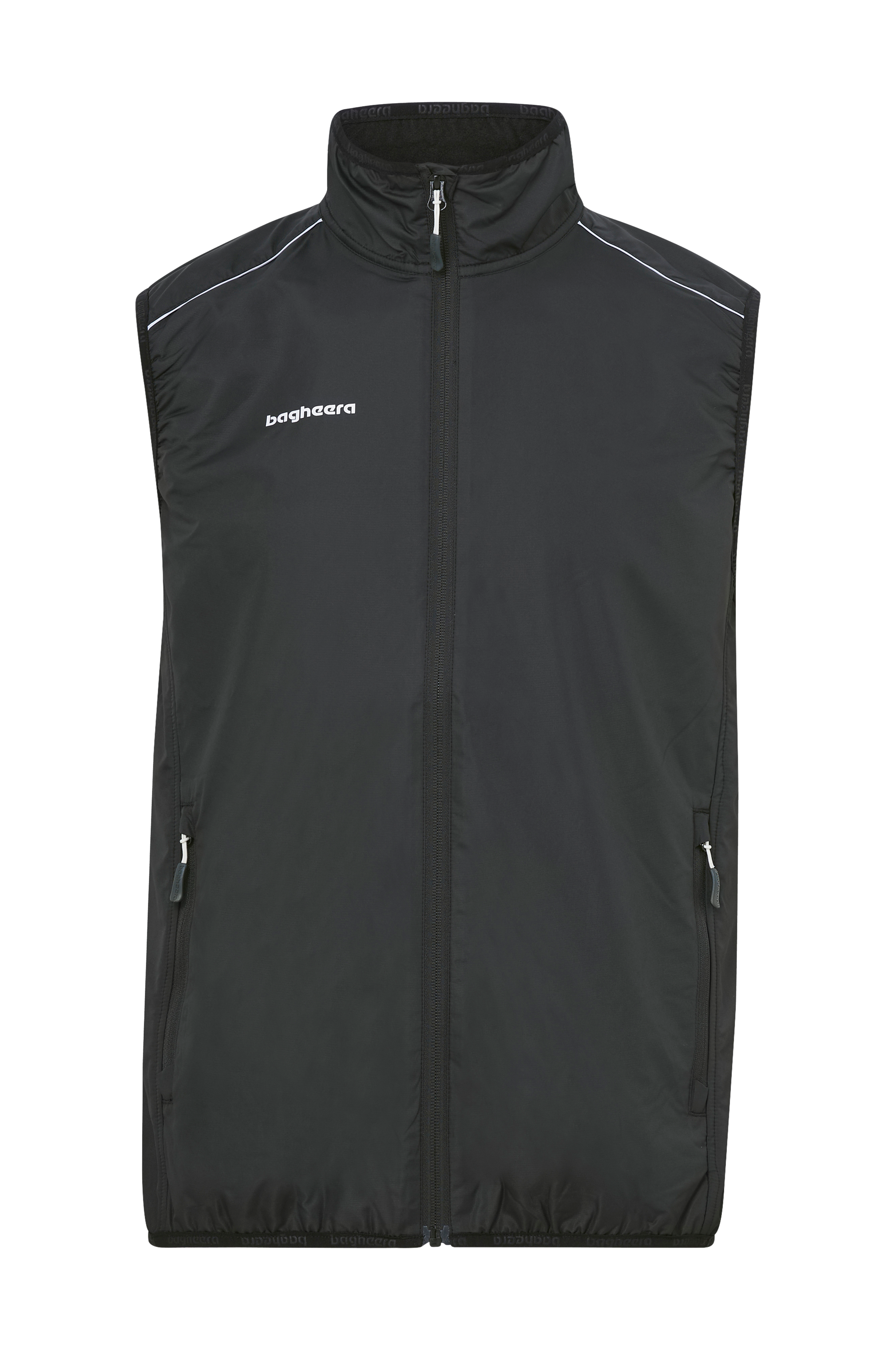 Fleecevest M fra Bagheera er en elastisk og isolerende vest med vindtæt materiale foran og vandafvisende overflade. Perfekt til brug som lag 2 eller som skal. To lommer med lynlås samt gennemgående lynlås foran. Elastisk bånd i kanten forneden og ærmegab for optimal pasform. Bagheera-print forneden bagpå og på brystet.