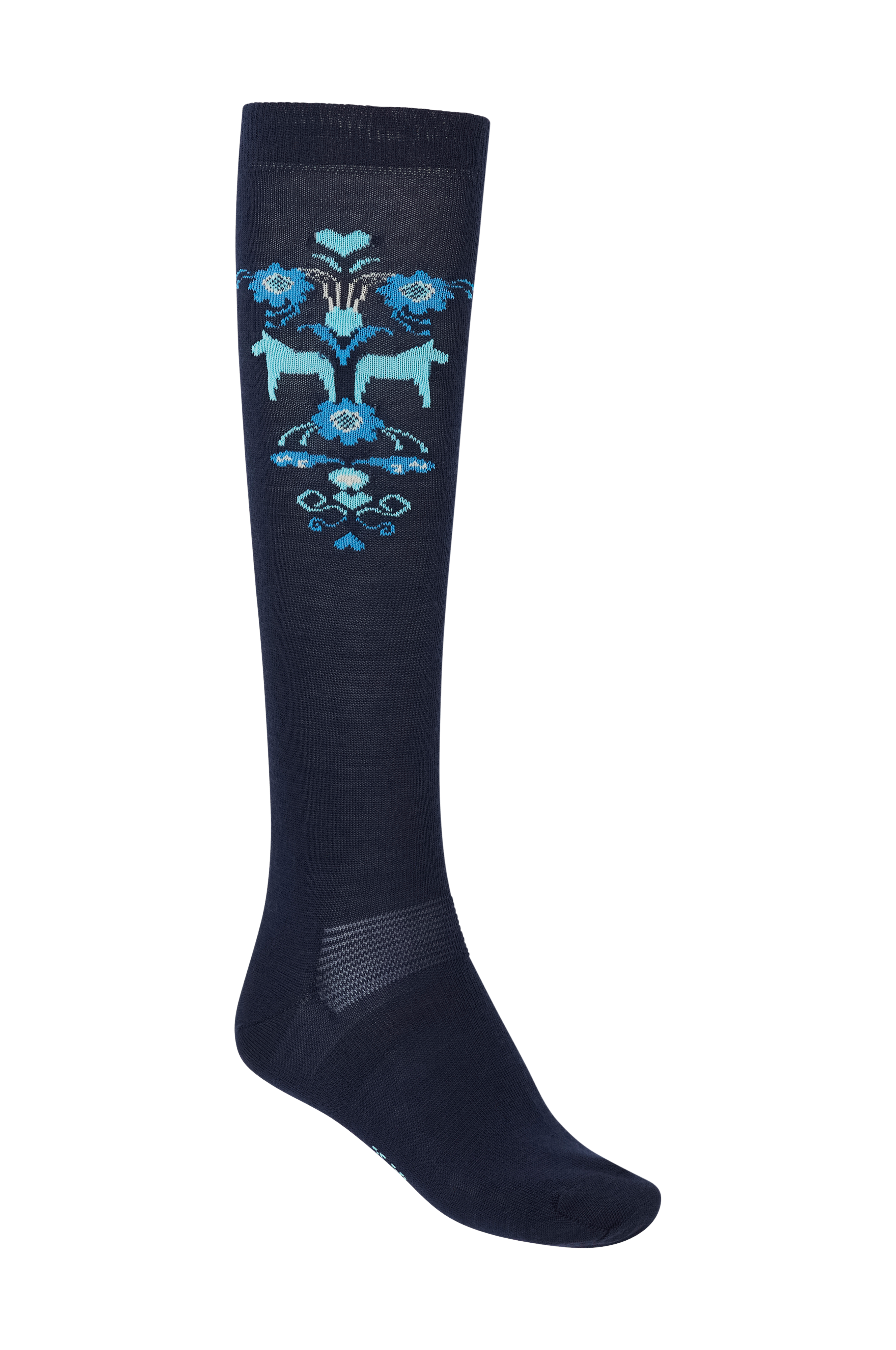 Strømper Merino Dalecarlian Socks High fra Bagheera. Knæstrømper i merinould med fint mønster på skaftet. Elastisk i ankel og svang for bedste pasform.
