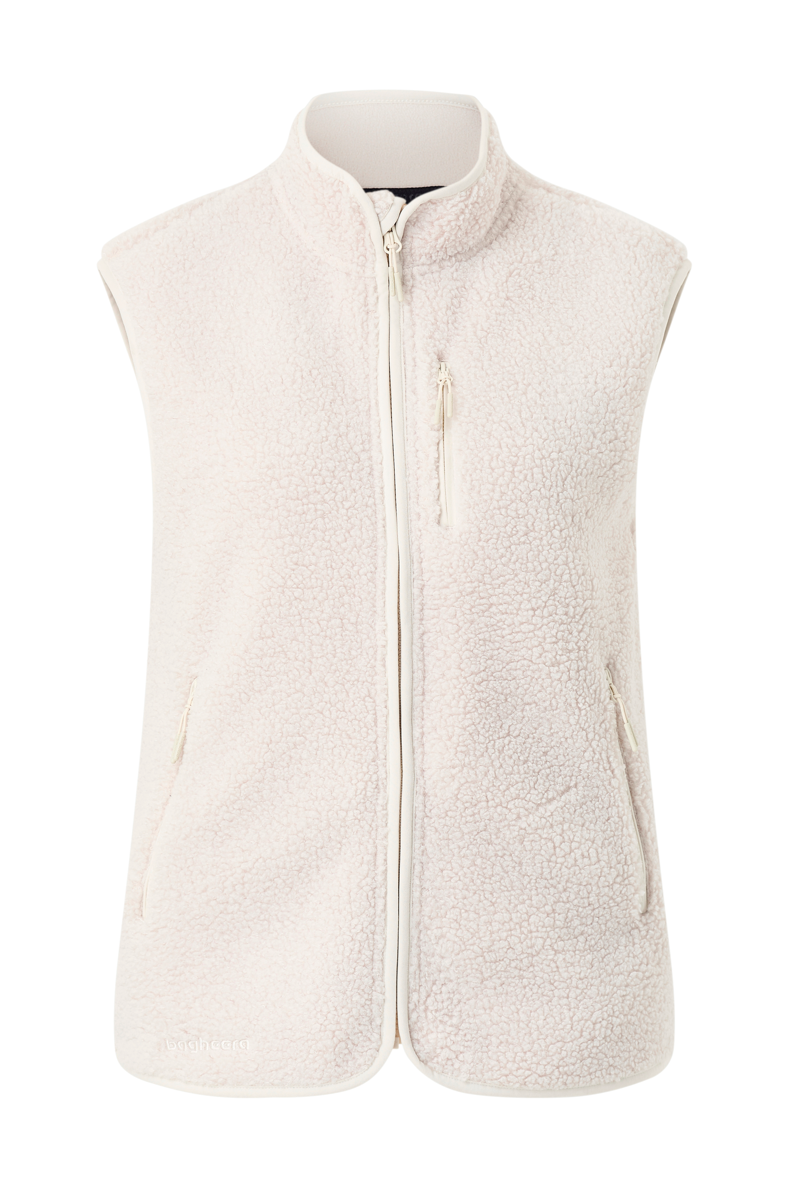 • Blød vest i pile• Varmende inderfor i fleece• Opretstående krave med elastikkant og hagebeskytter• Elastikkant ved ærmegabene• Lynlås foran• En brystlomme med lynlås• To sidelommer med lynlås• Afrundet søm med noget længere bagside
