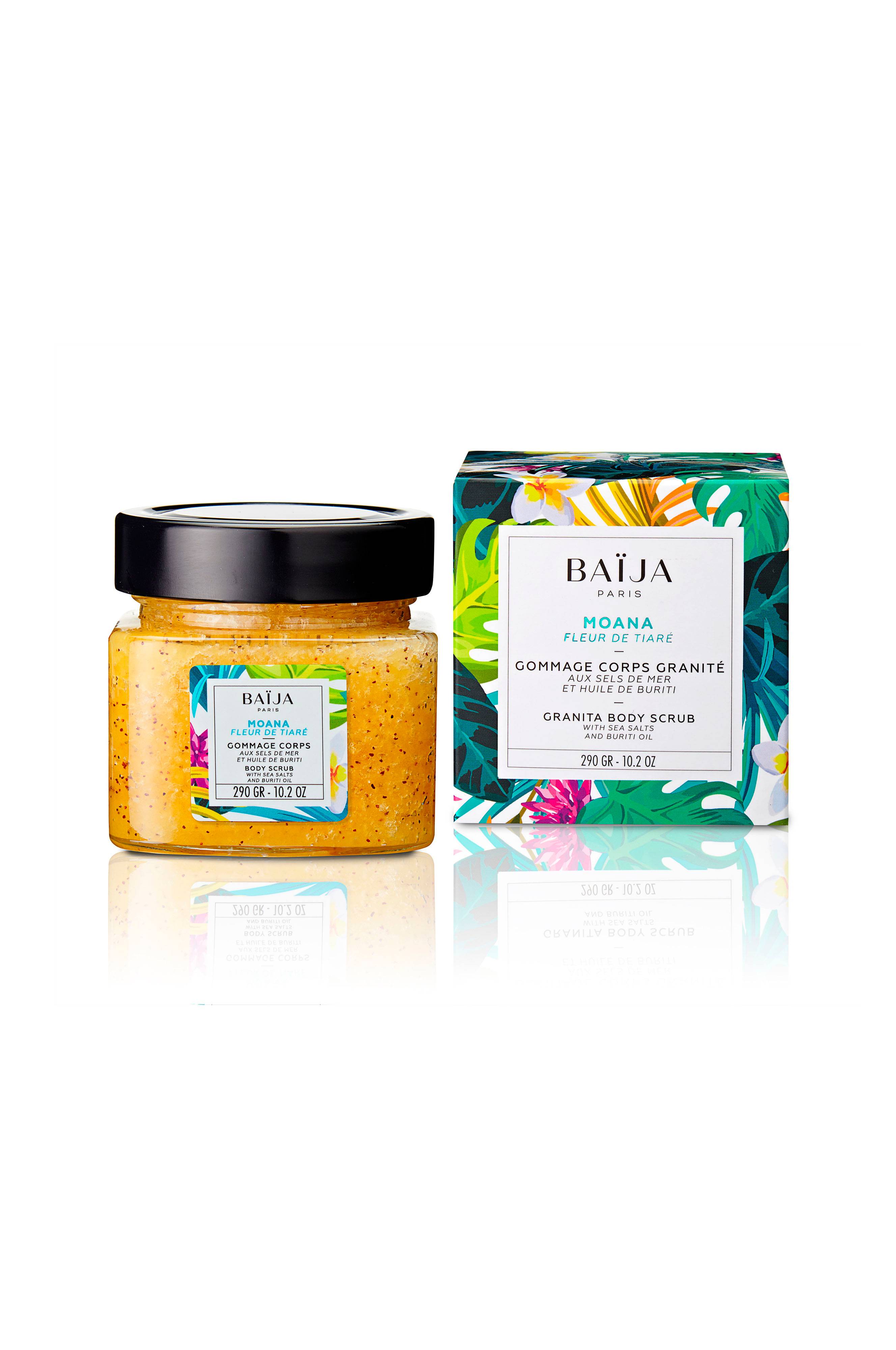 Bodyscrub med en eksklusiv formel med en høj koncentration af ingredienser af naturlig oprindelse. Den består af ingredienser med gavnlige egenskaber såsom havsalt og sheanøddeskalspulver, samt en kostbar cocktail af solsikke-, buriti-, jojoba- og kokosolie til en eksfoliering, der er lige så effektiv, som den er skånsom mod din hud. Den efterlader en behagelig duft af tiareblomst på din hud.