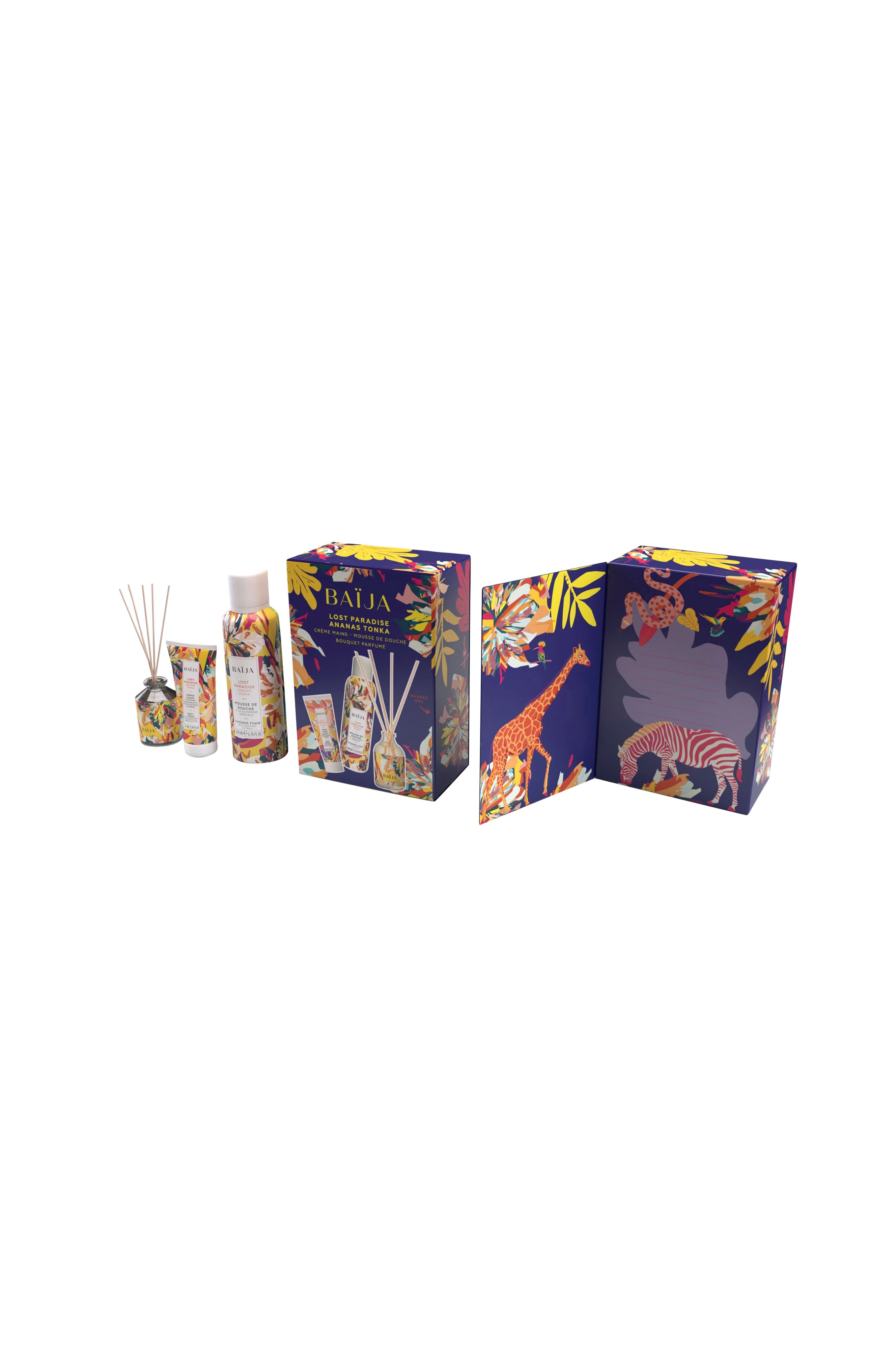 Oplev et paradis, hvor farverige fugle blander sig med pudderagtige toner og den solrige duft af ananas. I dette sæt finder du en cremet bruseskum, en håndcreme med ananasekstrakt og paranøddeolie samt en duftbuket med frugtagtige og solrige noter.