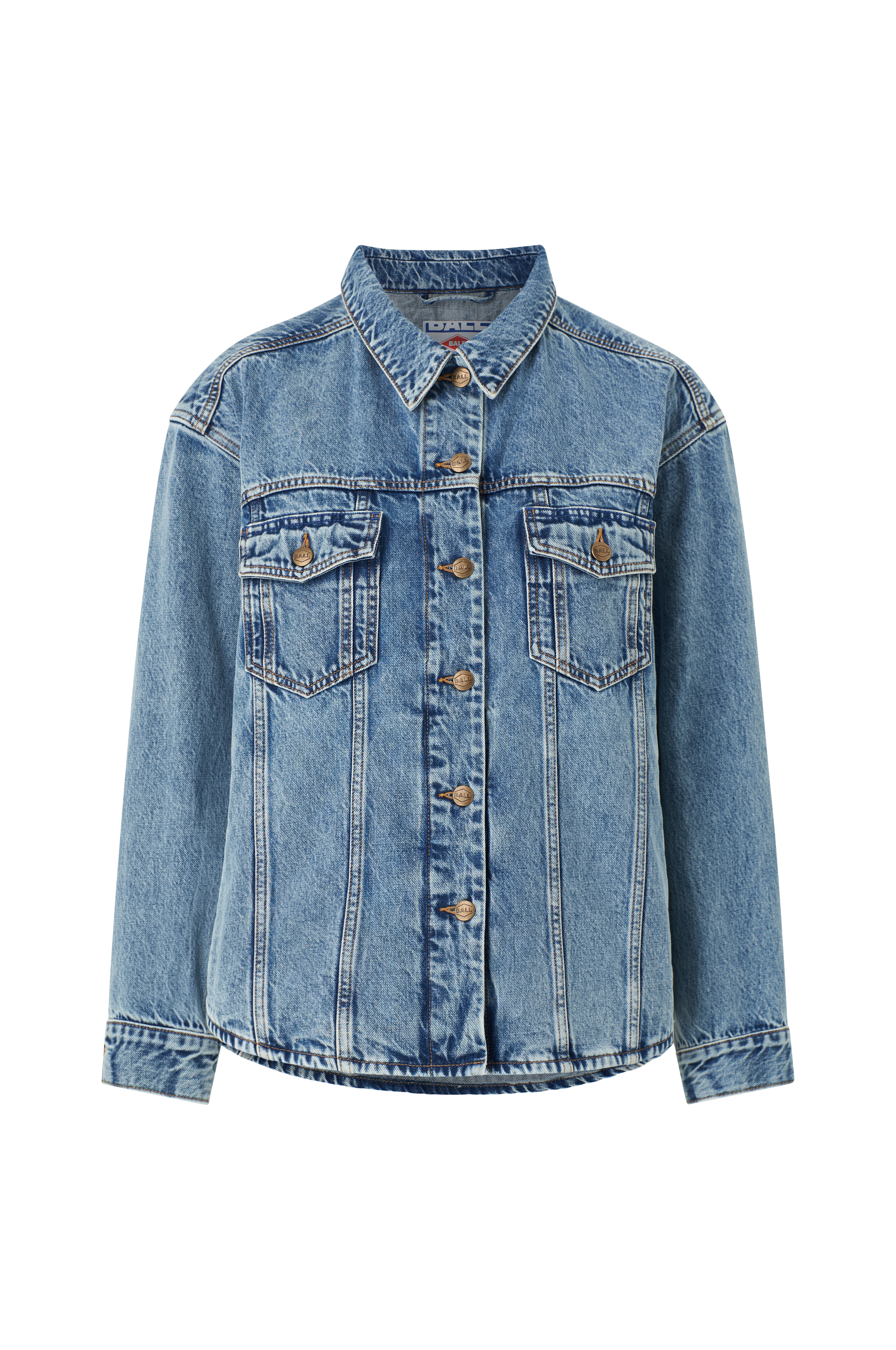 • Klassisk cowboyjakke med broderet, skinnende tekst på ryggen