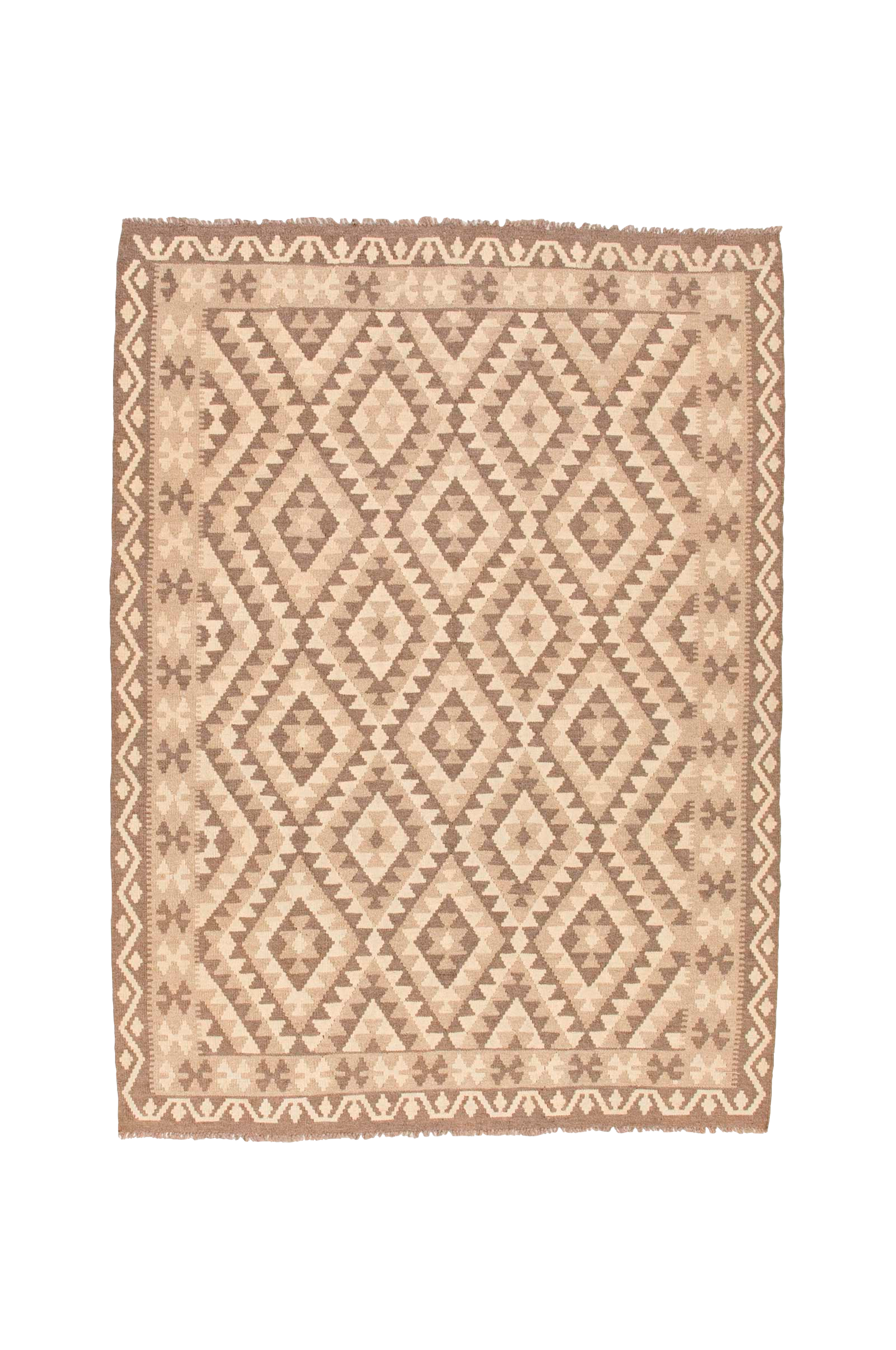 Et meleret tæppe i ufarvet garn af højeste kvalitet. Et traditionelt geometrisk mønster, hvor diamantformer pryder tæppet. Skønt varmende og smudsafvisende uld spreder hyggelig varme og giver tæppet lang levetid.