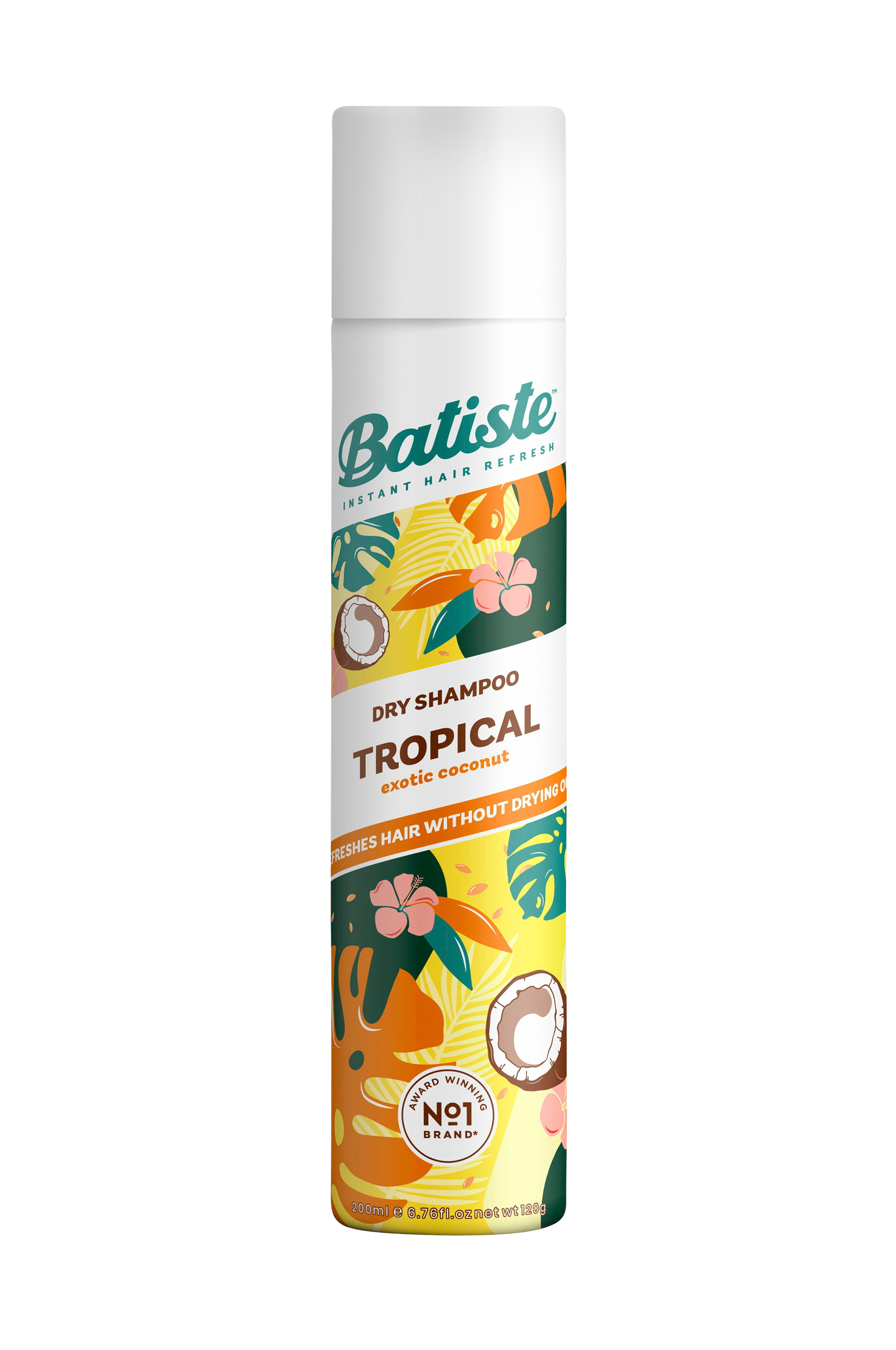 En effektiv tørshampoo, som straks får håret til at føles som nyvasket. Sprayflasken er nem at anvende, og du er klar til dit næste eventyr i en fart! Indeholder stivelse fra ris, som opsuger overskydende fedt fra hårbunden og rødderne og giver et ekstra løft. Anvendelse: Spray på 30 cm afstand mod hårrødderne, massér grundigt ind og red derefter håret igennem for at fjerne evt. rester af produktet. Tip: Spray i nyvasket hår for at få en frisure med ekstra volumen og hold.Batiste Tropical har en tropisk aroma med et hint af kokos.