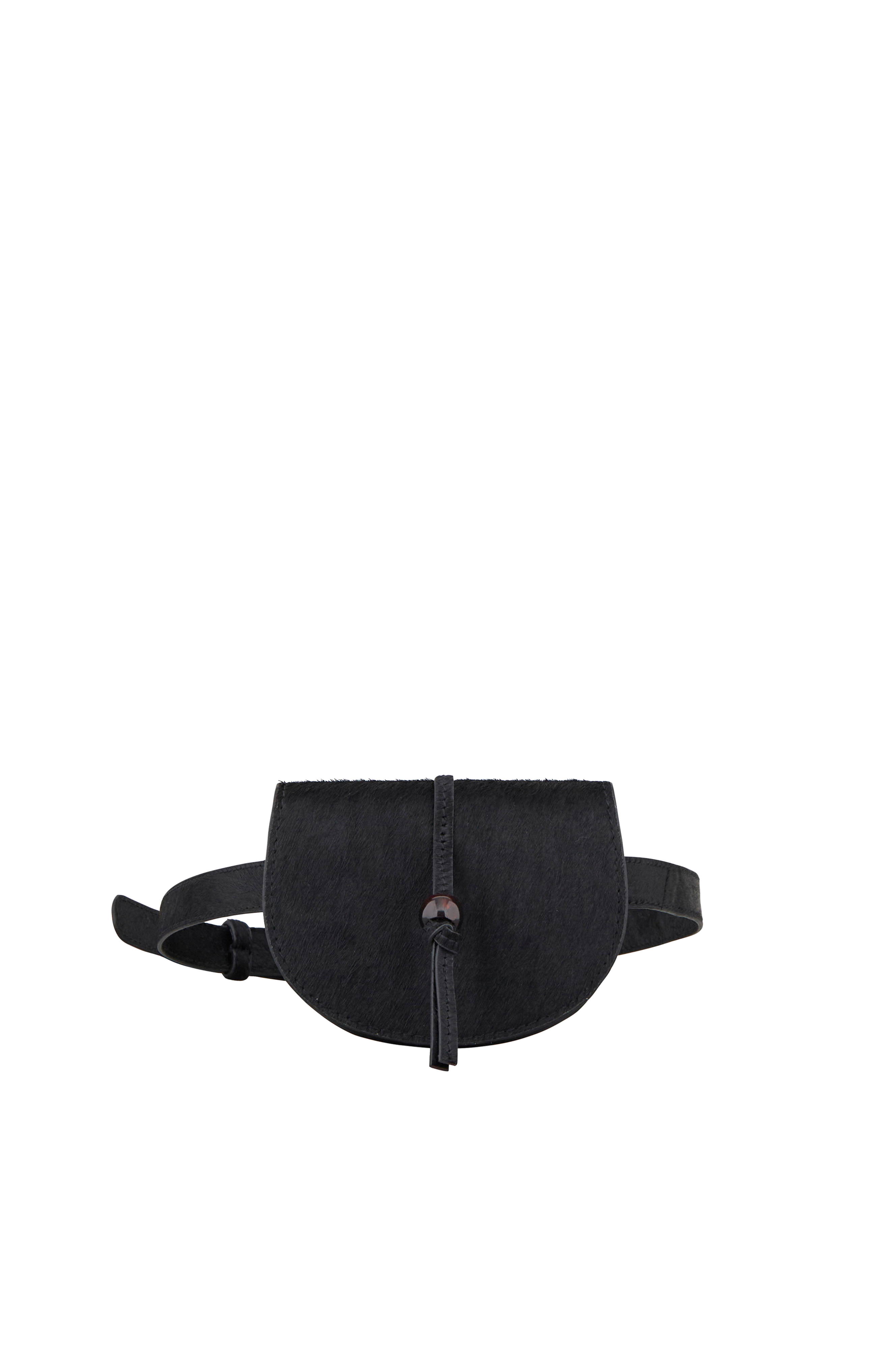 • Bæltetaske i læder med pels• Justérbar rem• Hovedrum med låg• Et åbent inderrum• Et inderrum med låg• Stropdetalje