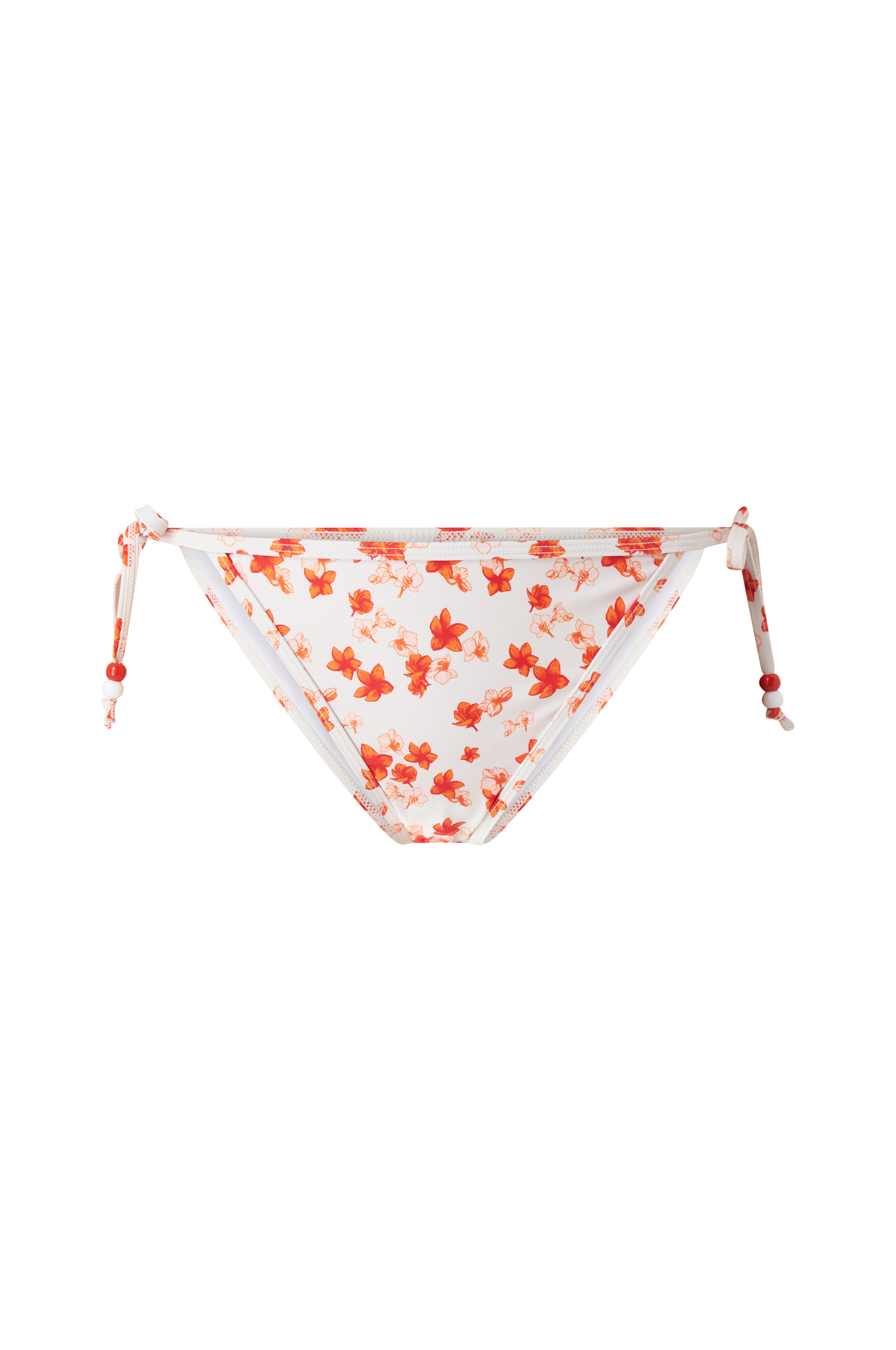 • Mønstrede bikiniunderdele• Bindebånd med perler i siderne• For foran