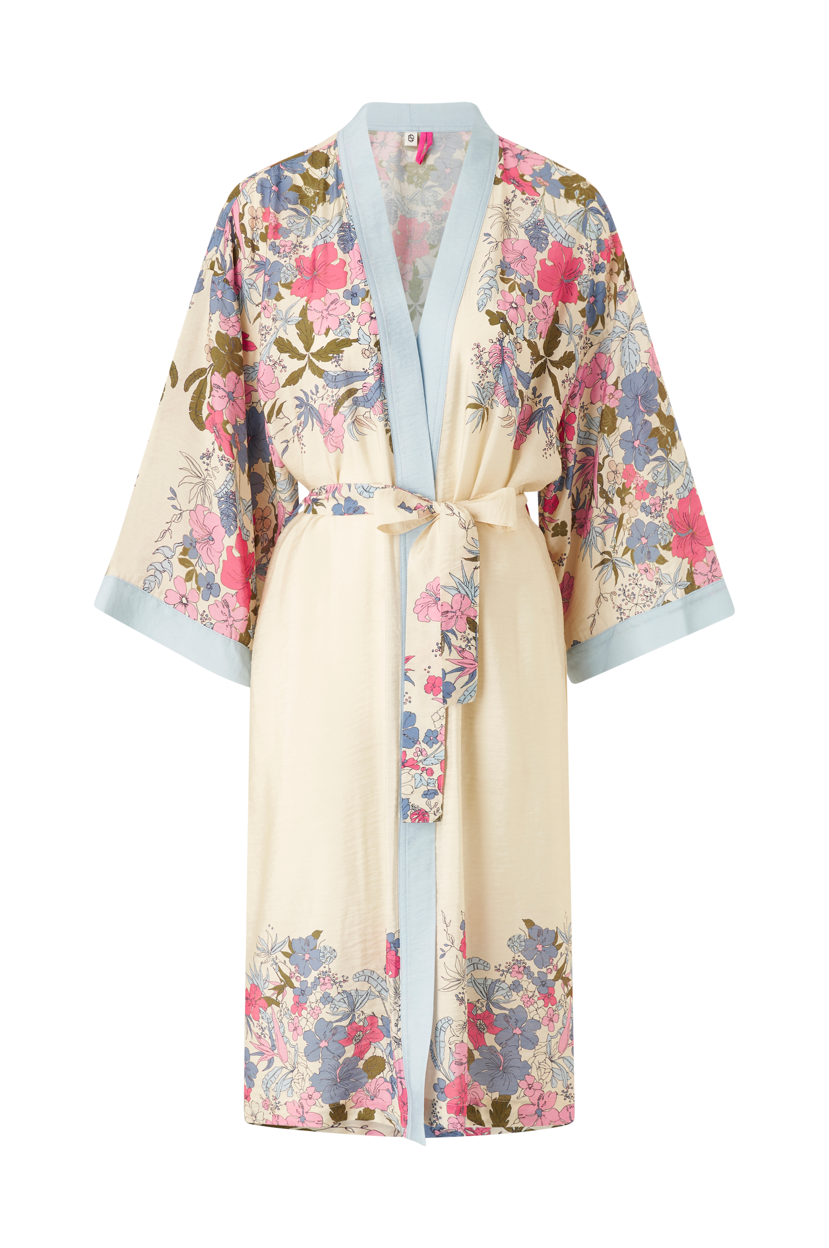 • Lang model i satin• Stropper med bindebælte ved taljen• Nedsænket skulder med bredt, 3/4 langt ærme