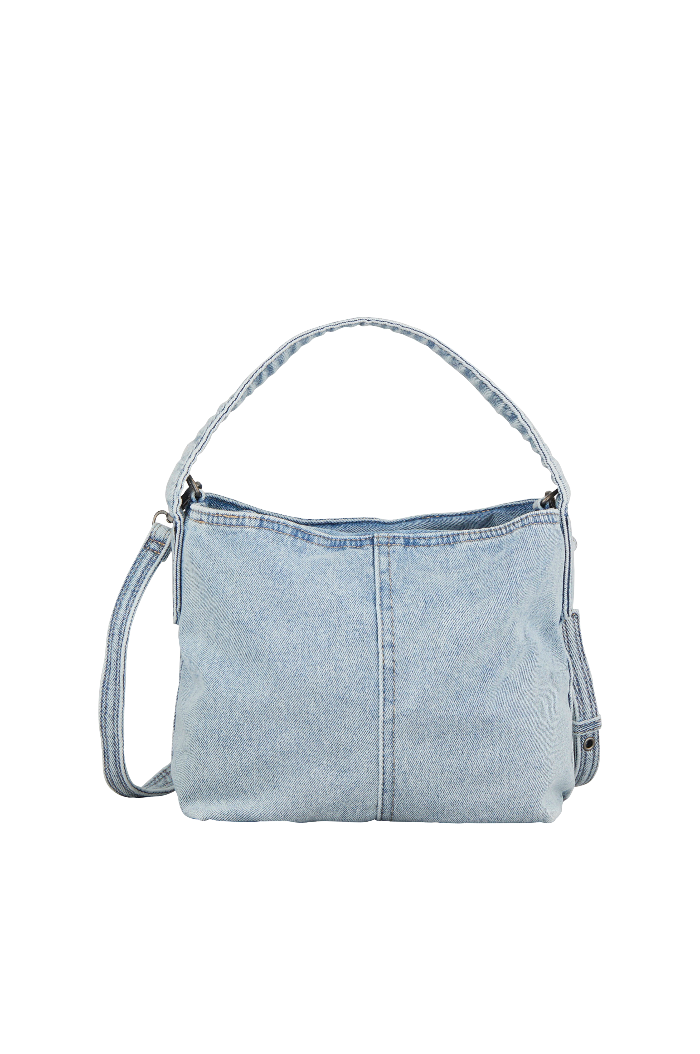 • Skuldertaske i vasket denim• Aftagelig, justérbar skulderstrop• Robust håndtag• To fag indeni med lynlås• Hovedrum med trykknap• Mål: 24 x 22 cm