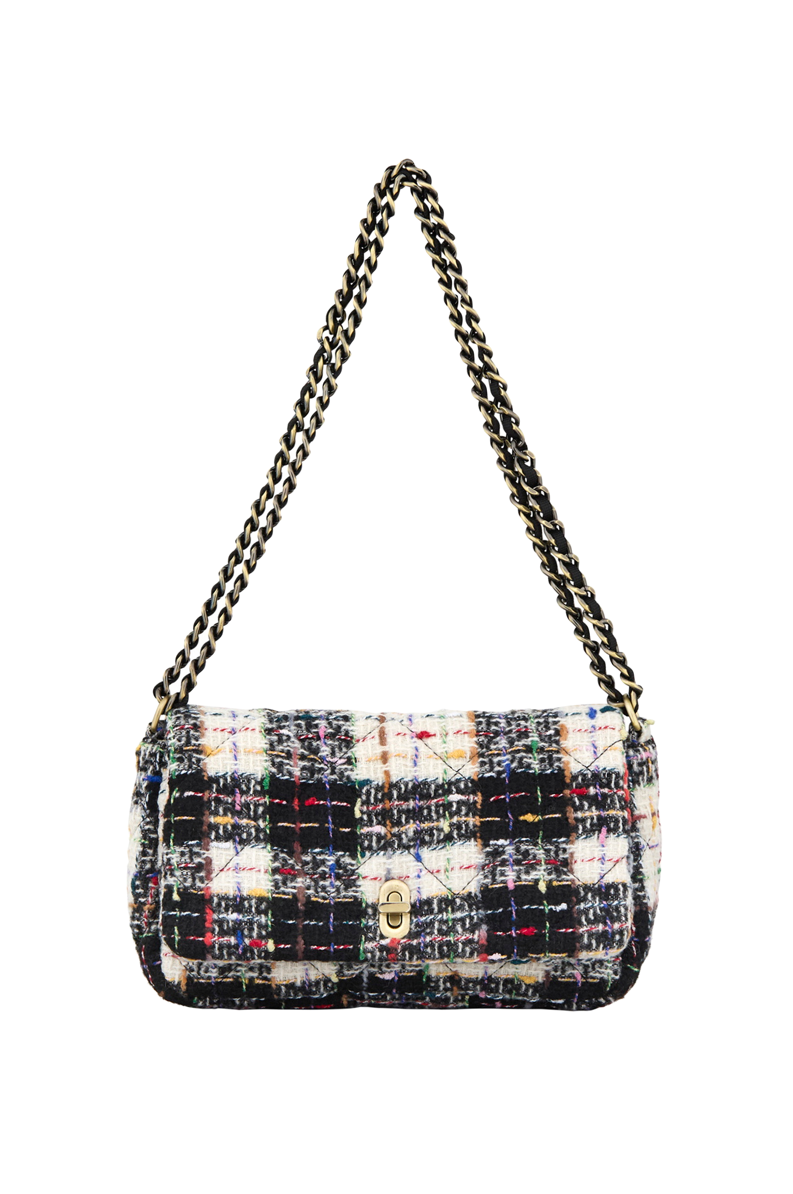 • Taske i bouclé med tekstilforing• Låg med drejelås• En indvendig Rum med lynlås• Dobbelt skulderstrop i tekstil og metal