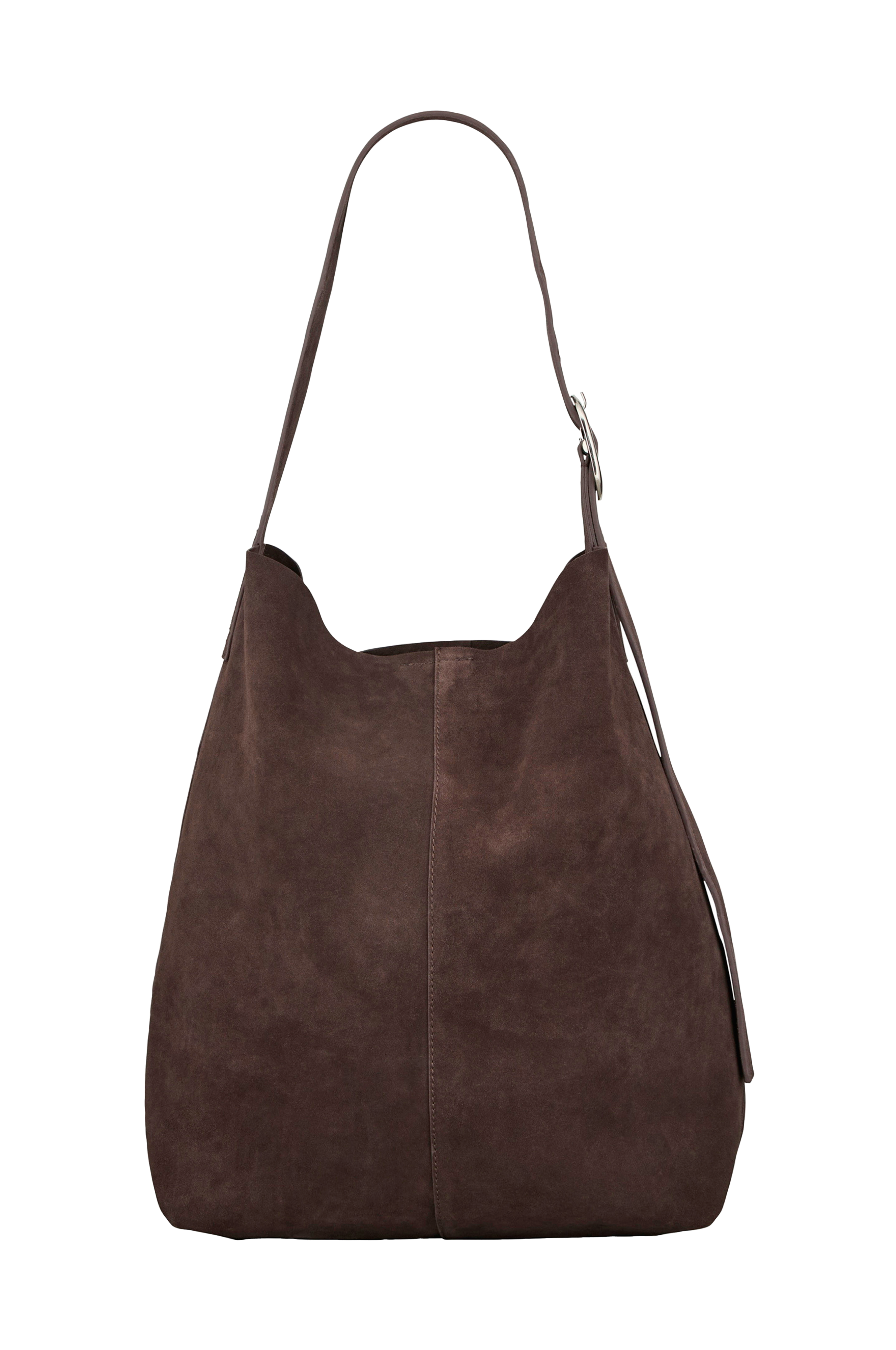 • Taske i ruskind• Justérbar skulderstrop• Magnetisk trykknapslukning• En indvendig taske med lynlåslukning