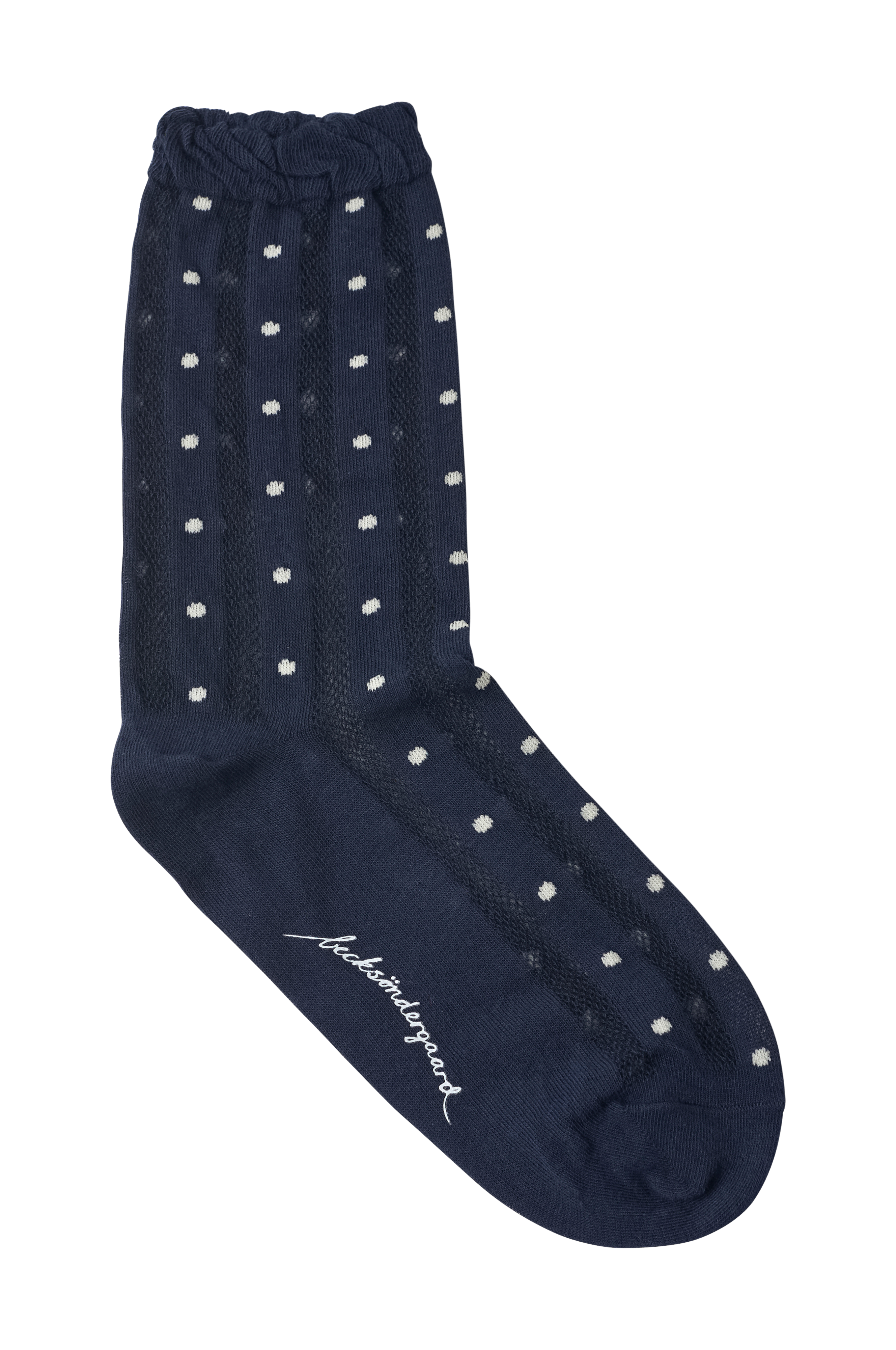 • Prikkede strømper i bomuldsblanding• Hulmønstrede detaljer• Dekorativ kant på skaftet