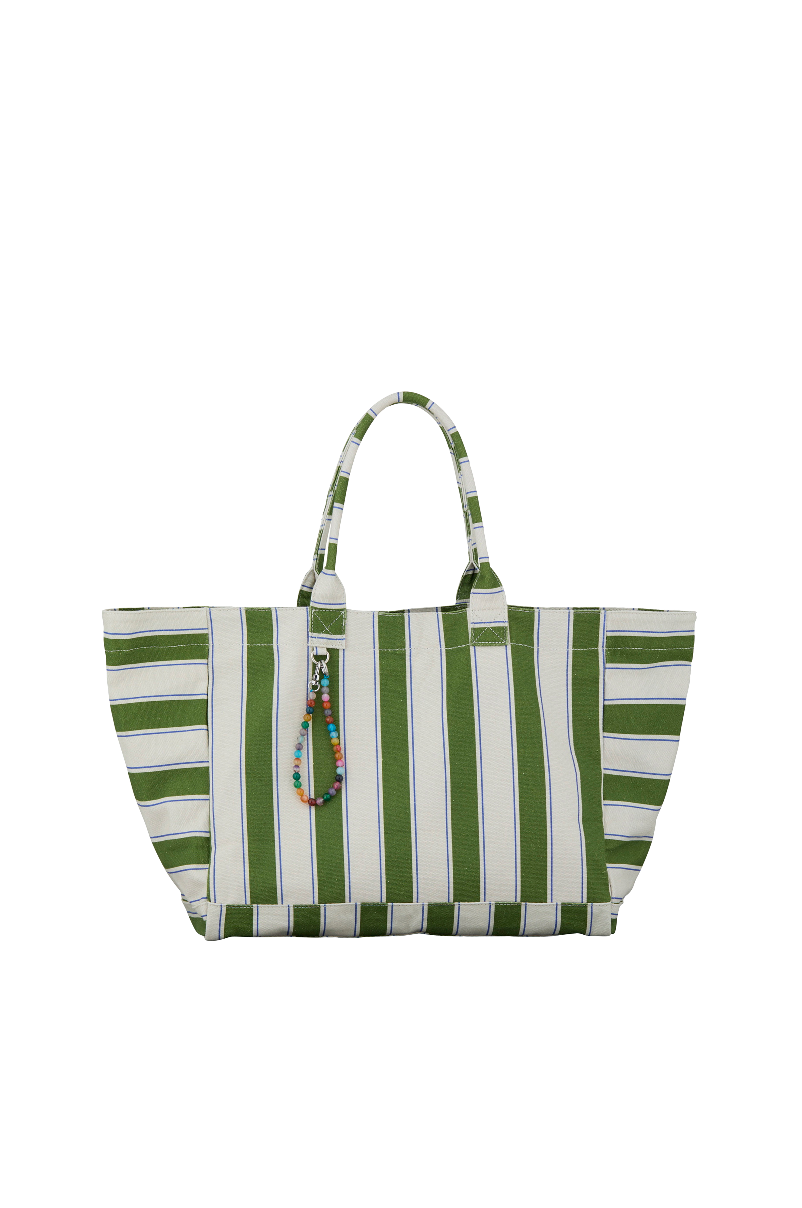 • Taske i kanvas med stribet mønster• Hovedrum med karabinhage og snørehul• Lille fag på indersiden med lynlås• Shopper design• Skulderstropper• Mål: 42 x 34 cm