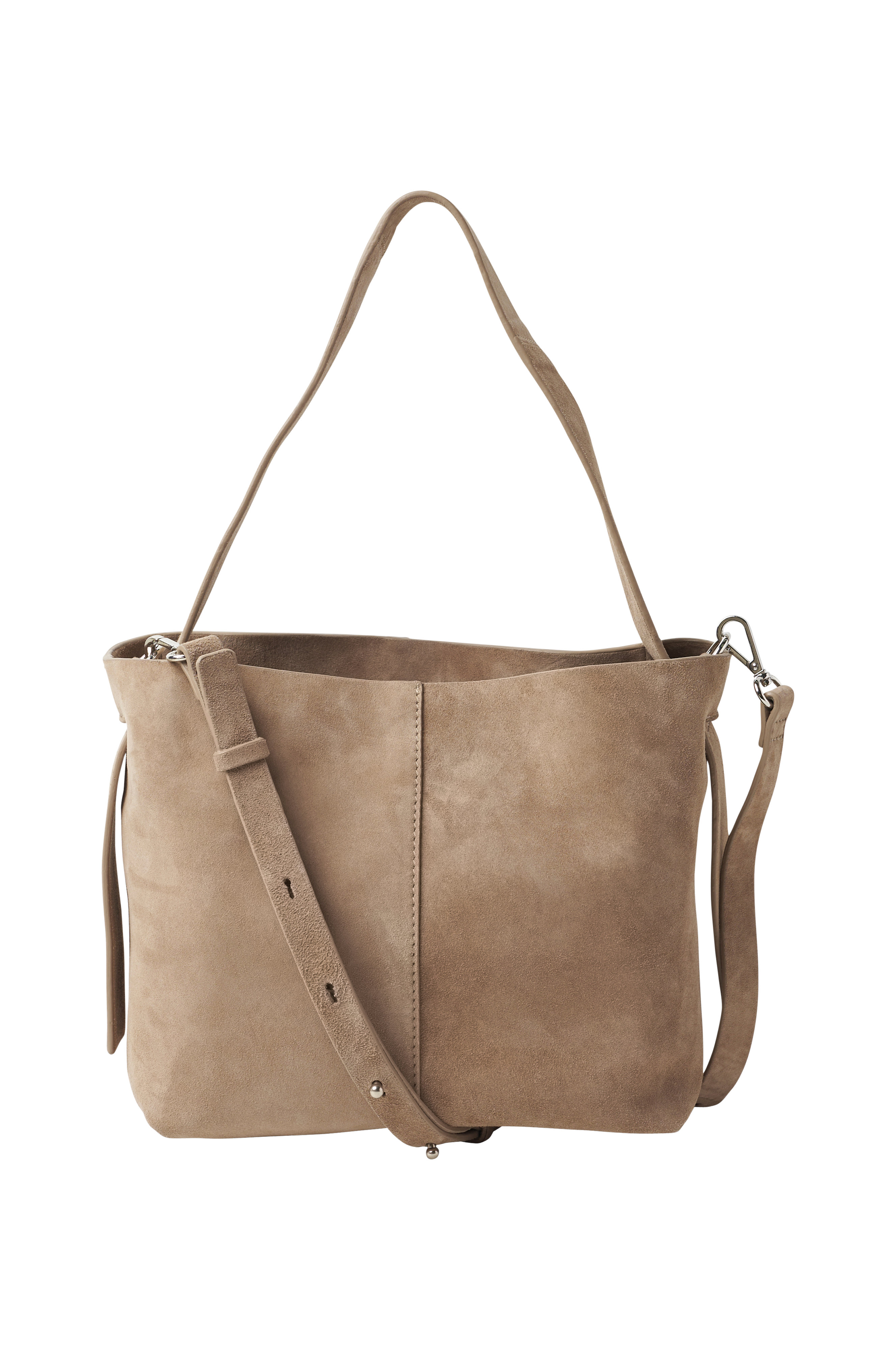 • Taske i ruskind• Lukning med magnetknap• To store fag• Et fag med lynlås• En indvendig, åben lomme• En indvendig lynlåslomme• Tekstilforing• Bærehåndtag• Justérbar, aftagelig skulderstrop• Mål: B 26 x H 23 x D 12 cm