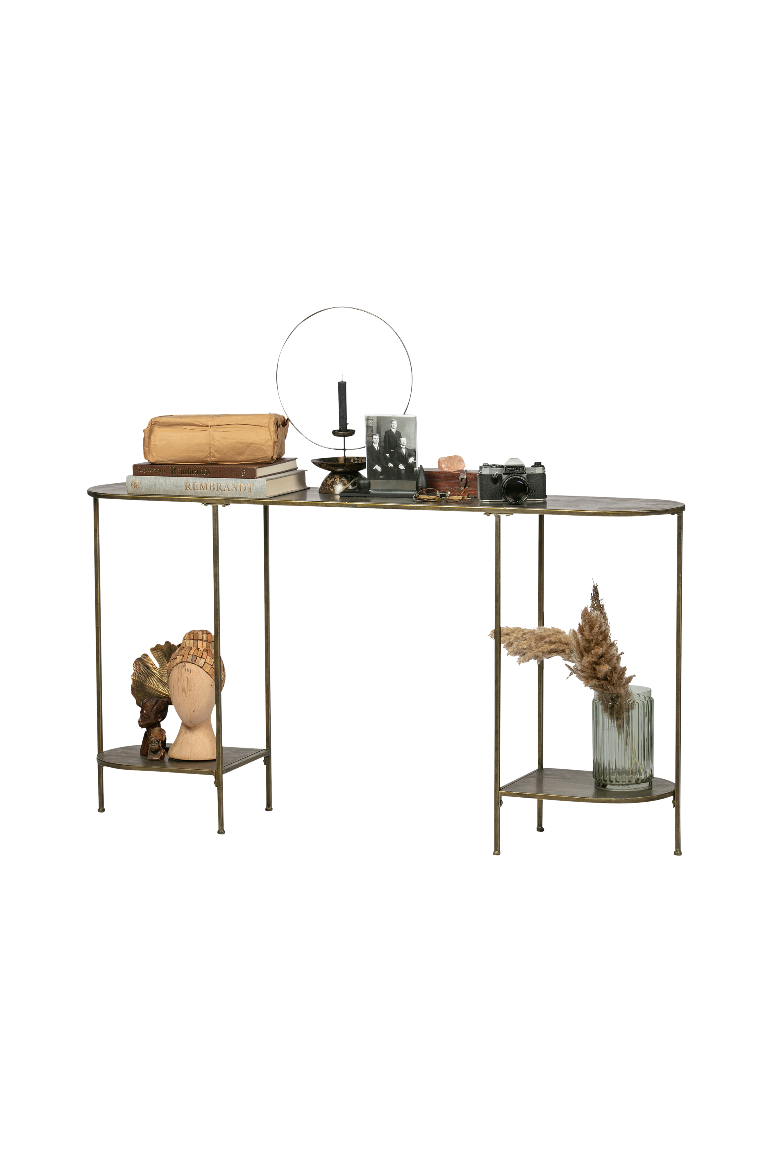 Dette elegante bord fra kollektionen fra det hollandske mærke BePureHome er lavet af jern med finish i antikmessing. Sidebordet er bredt (145 cm) og har derfor flere hylder. Så der er masser af plads til fine ting!