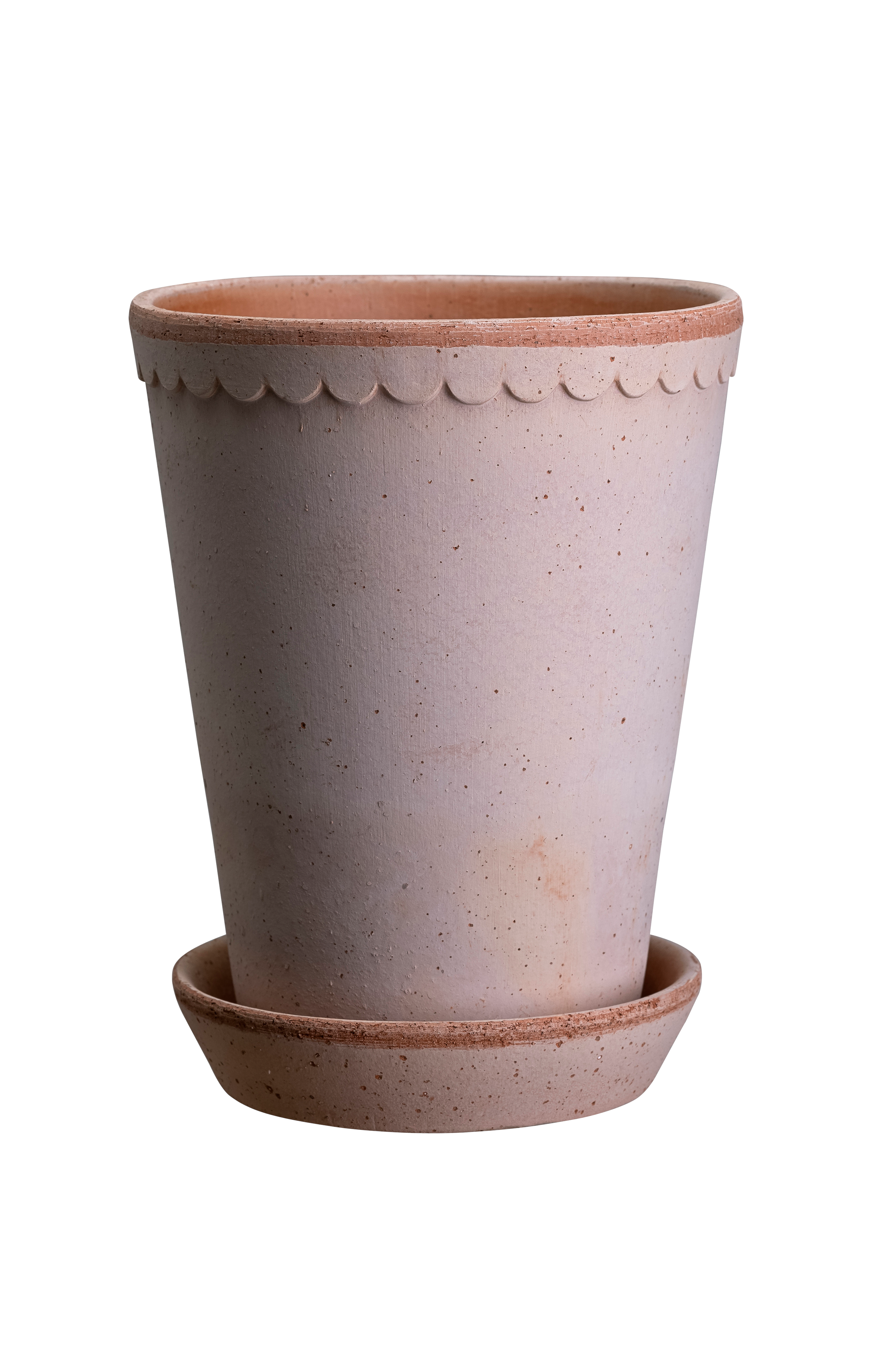 Nord for Rom i Lazio-regionen ligger den lille by Di Bolsena, et sted, der engang var fyldt med keramikere og var hjemby for Roberto Rosso, en af Italiens største keramikere. Inspireret af antikke græske mønstre skabte Rosso keramik med fremtrædende lerkanter, et populært element gennem hele 1800-tallet. Fascineret af ideen om en dekorativ kant, skabte Steffen Berg vores krukke Helena med den enestående tungekant, der giver blomsterkrukken en blød, men klassisk stil. I dag fejrer vores italienske keramikere Rossos mesterværk, hver gang en ny Helena-krukke skabes.