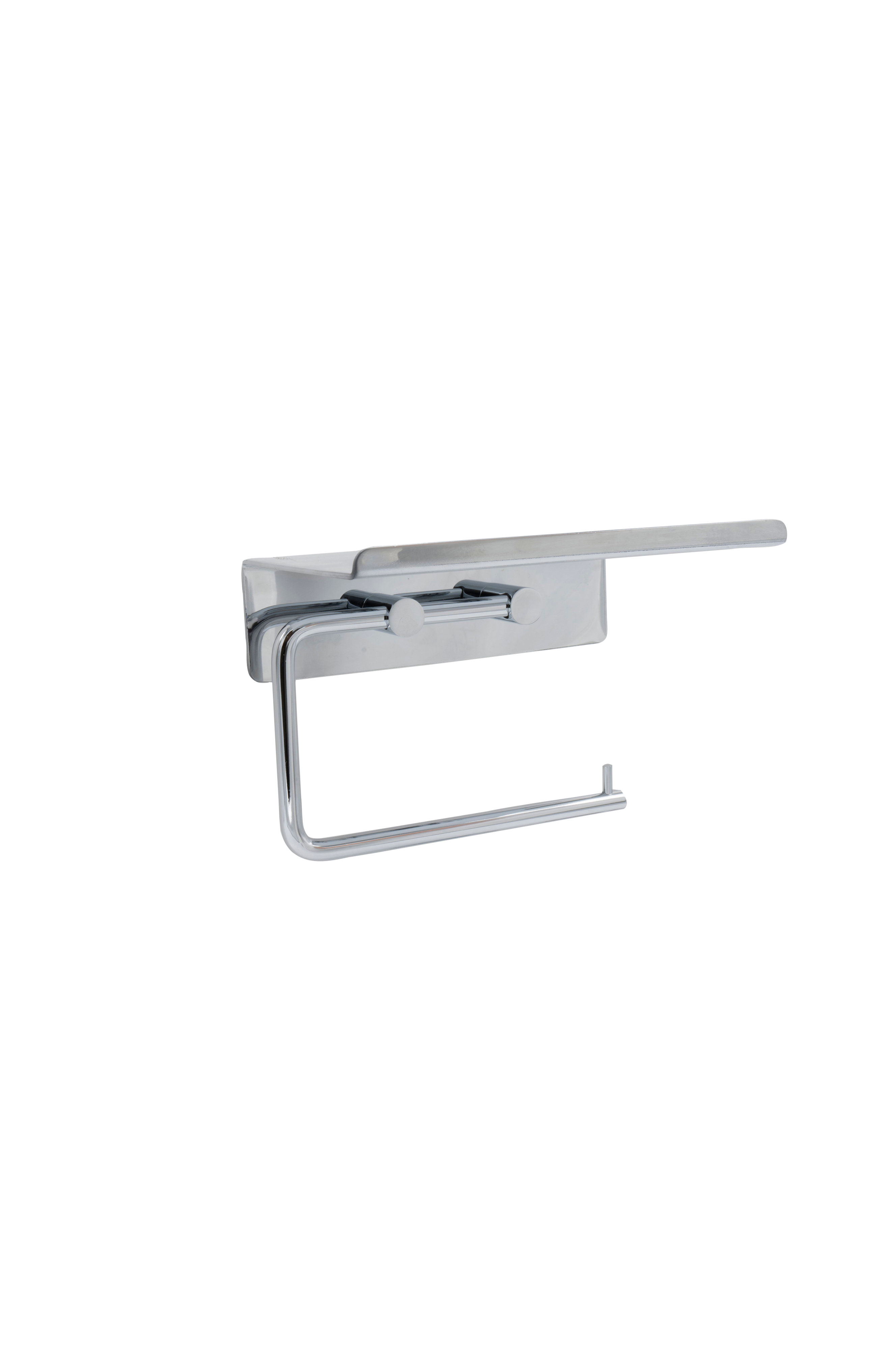 Base toiletpapirholder med hylde er en moderne løsning, der opfylder nutidens badeværelsesbehov med en følelse af elegant design. Fremstillet af massivt rustfrit stål. Den kombinerer to praktiske funktioner i én, og den smarte hylde giver dig mulighed for at dekorere med duftpinde, duftlys eller et sted at opbevare din mobiltelefon. Med sit tidløse og slanke design passer den problemfrit ind i forskellige badeværelsesindretninger. Det er nemt at installere takket være den selvklæbende bagside, så du ikke behøver at bore i væggen.