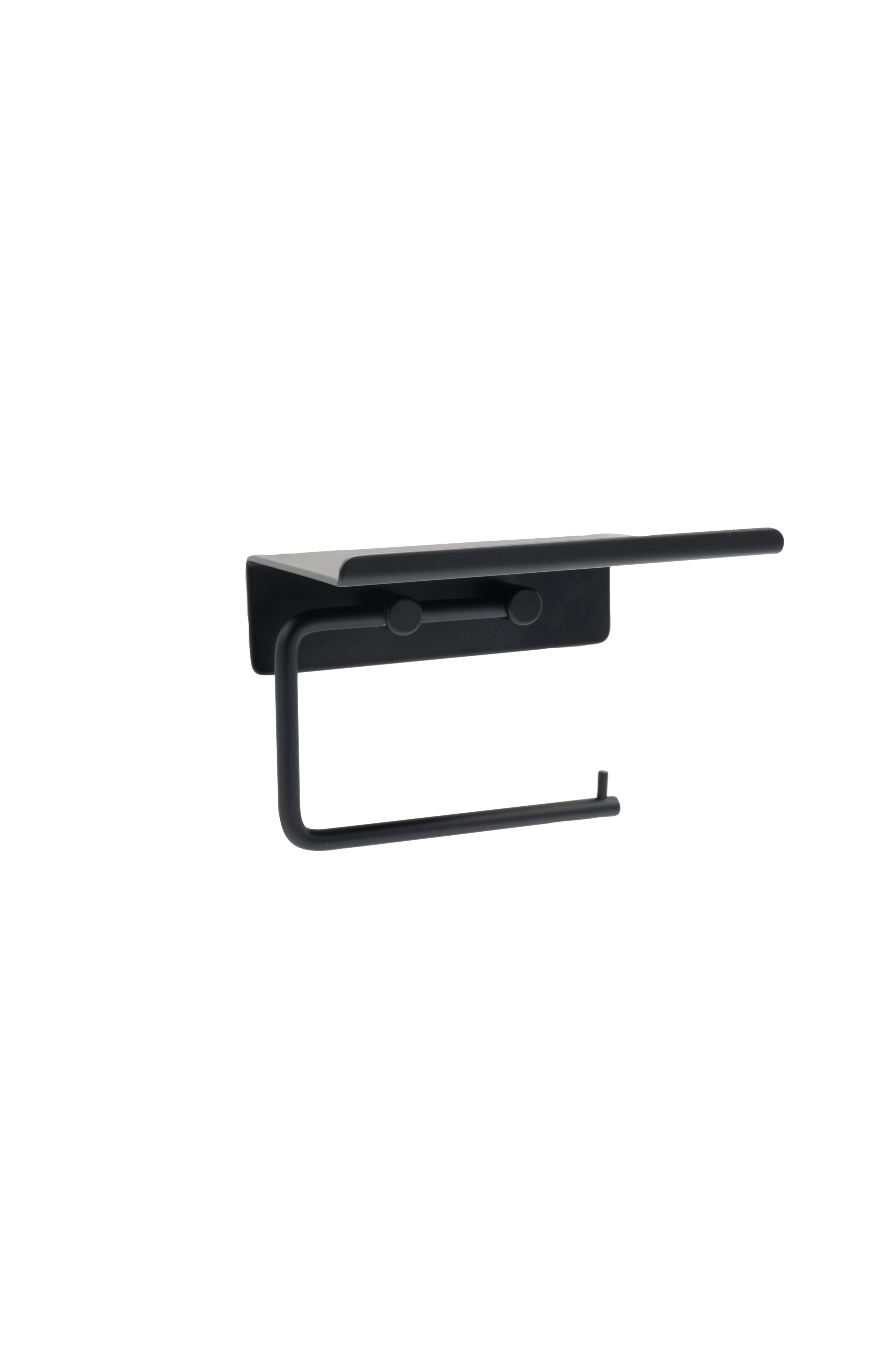 Base toiletpapirholder med hylde er en moderne løsning, der opfylder nutidens badeværelsesbehov med en følelse af elegant design. Fremstillet af massivt rustfrit stål. Den kombinerer to praktiske funktioner i én, og den smarte hylde giver dig mulighed for at dekorere med duftpinde, duftlys eller et sted at opbevare din mobiltelefon. Med sit tidløse og slanke design passer den problemfrit ind i forskellige badeværelsesindretninger. Det er nemt at installere takket være den selvklæbende bagside, så du ikke behøver at bore i væggen.