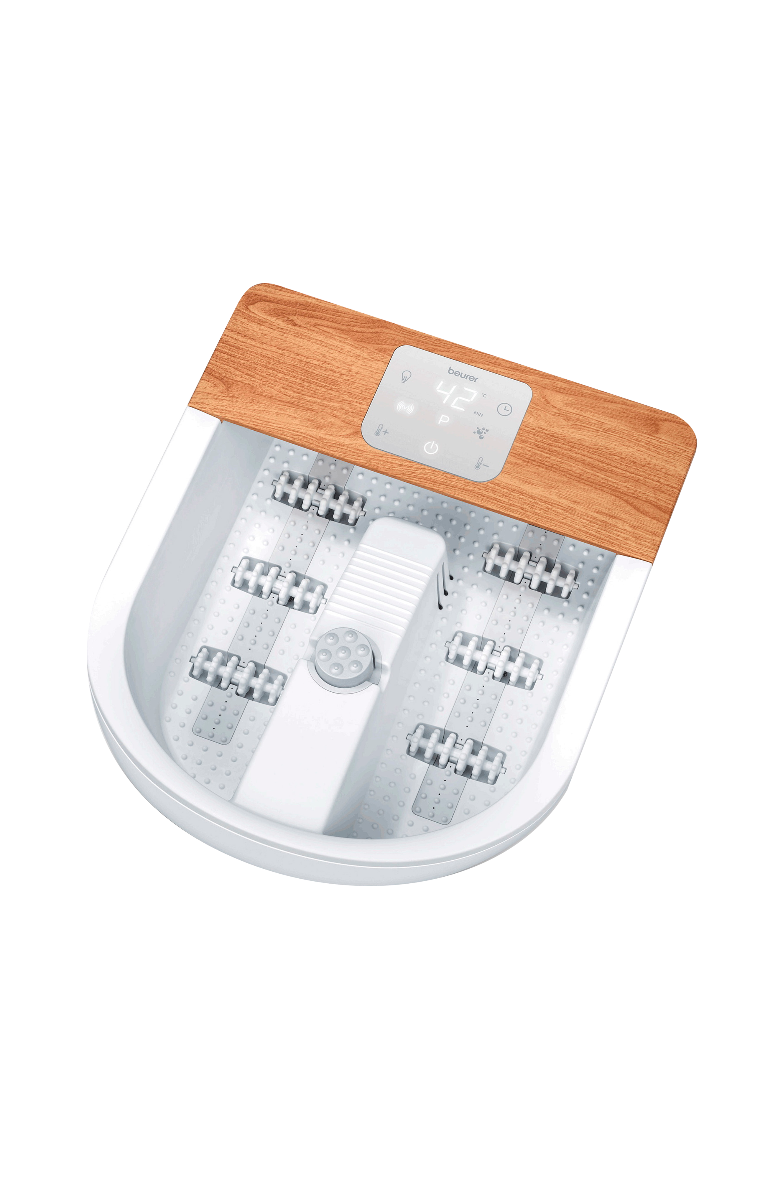 Fodbad med blid vibrations- og boblemassage, vandvarmefunktion med tre temperaturindstillinger og valgbar stemningsbelysning for en afslappende behandling. Fodbadet har også en roterende pedicurestation med tre stk. tilbehør. Det dobbeltvæggede design sikrer bedre termisk isolering og stænkbeskyttelse. Touchskærmen på fodbadet giver dig mulighed for nemt at justere forskellige programmer og varme. Fodbadet passer til skostørrelser op til 51 og har praktiske bærehåndtag, skridsikre gummifødder og en ledningsopruller for nem opbevaring.