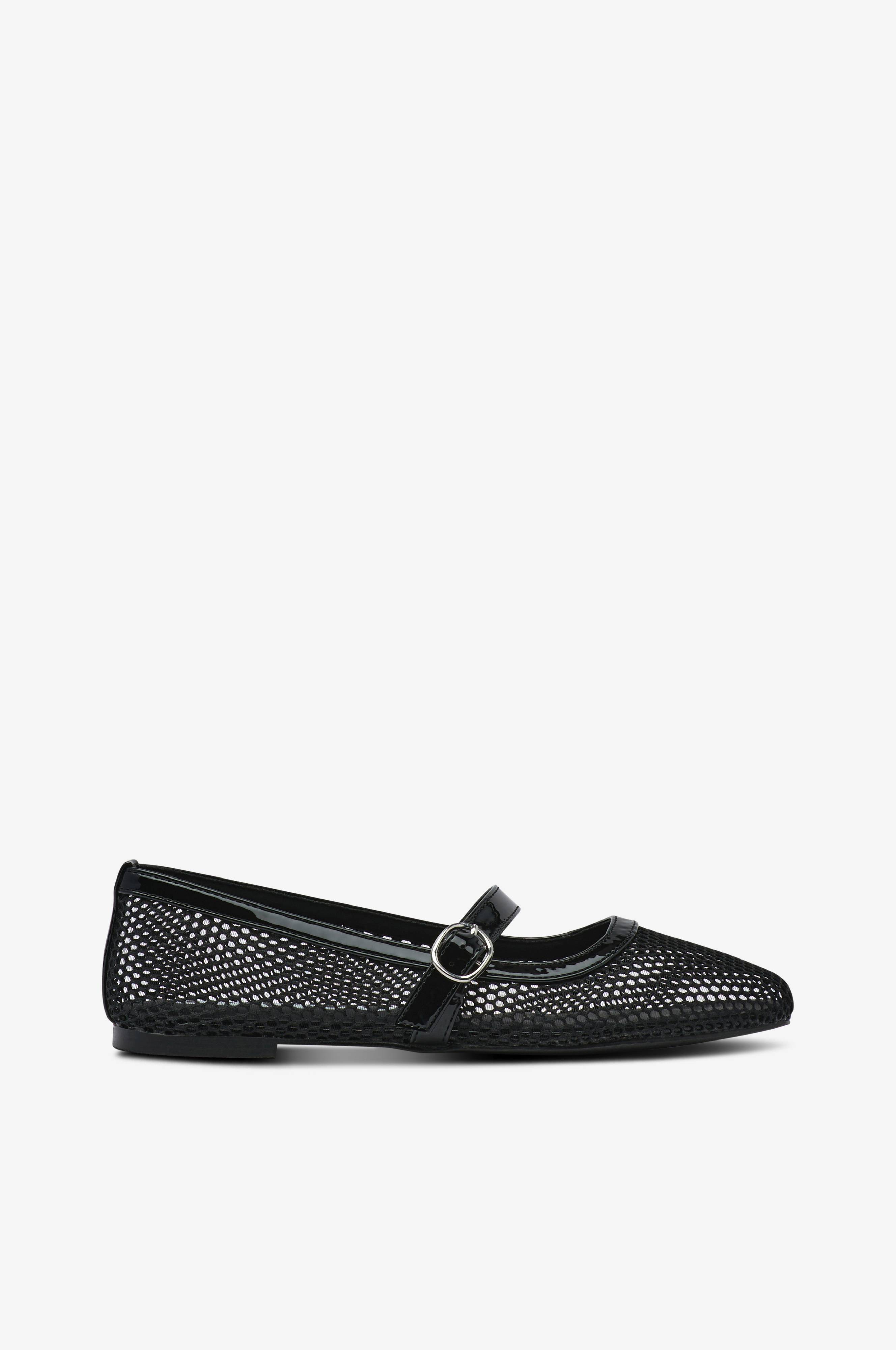 • Ballerinasko i transparent mesh• Patent, justérbar rem over foden med metallukning• Blød polstret indersål