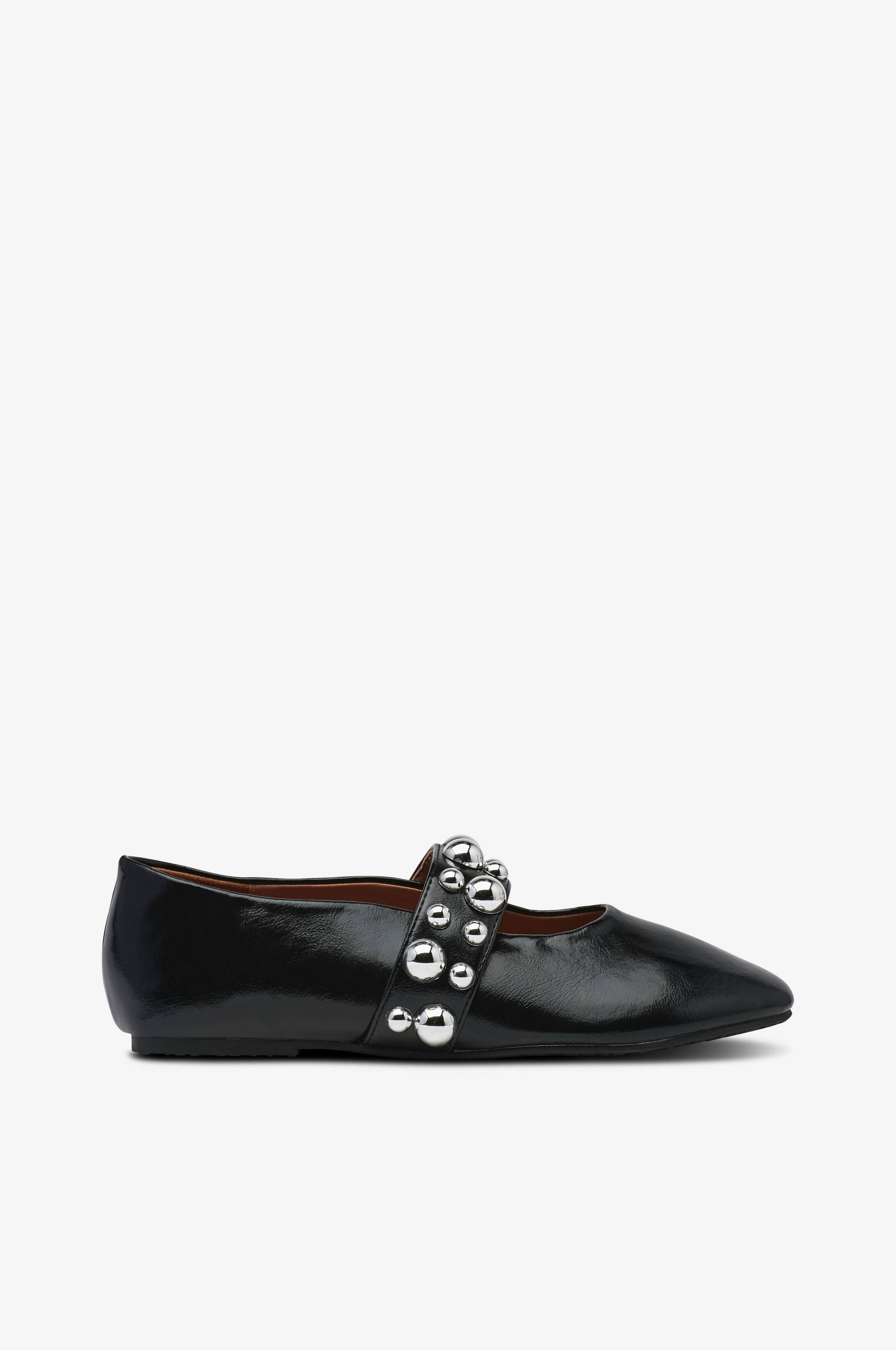 • Ballerinasko i imiteret læder• Rem over foden med store, runde nitter• Blød polstret fodseng