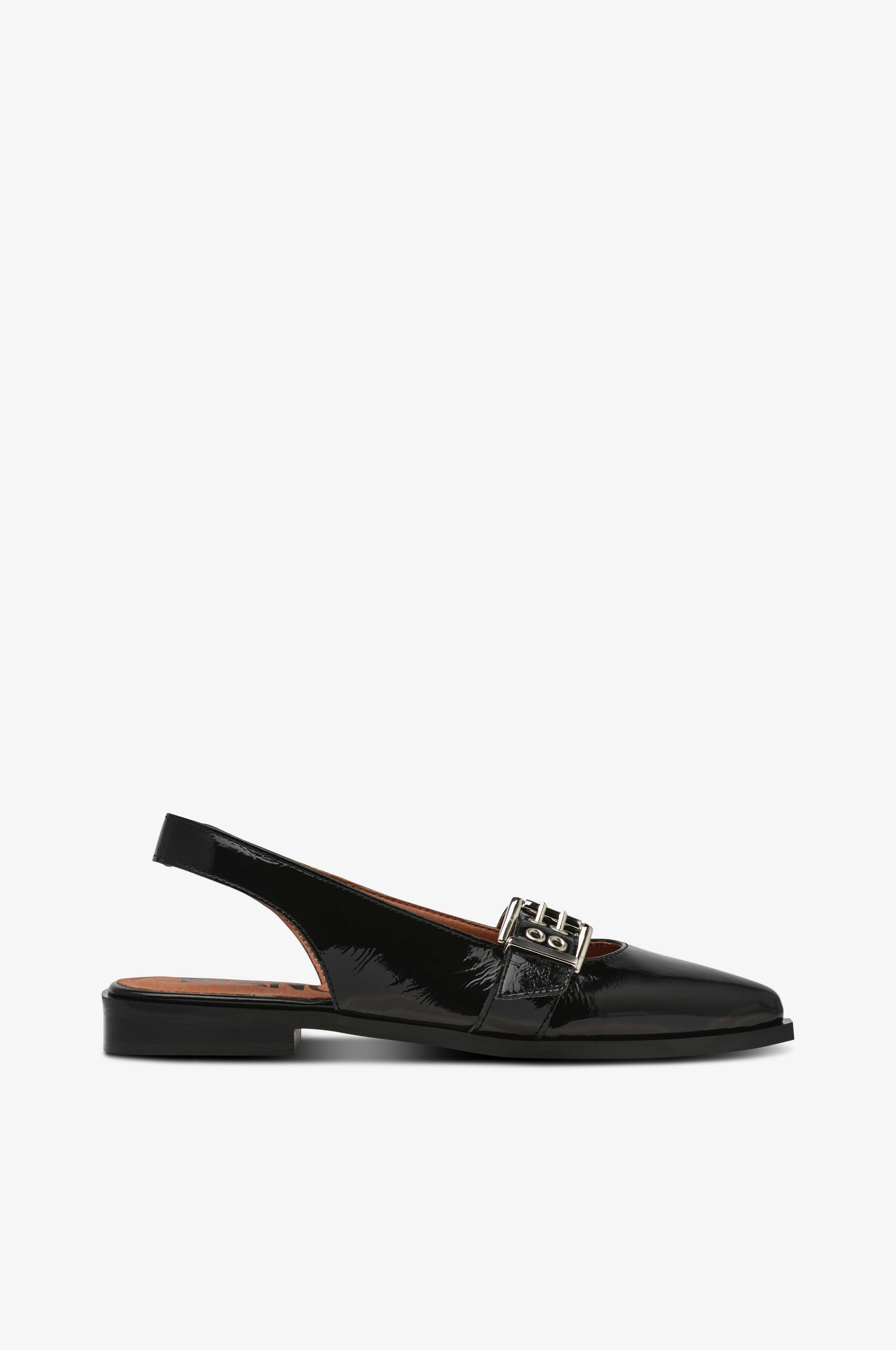 • Slingbacks i patent læder• Spids snude• Rem omkring hælen• En justérbar rem med dekorative nitter