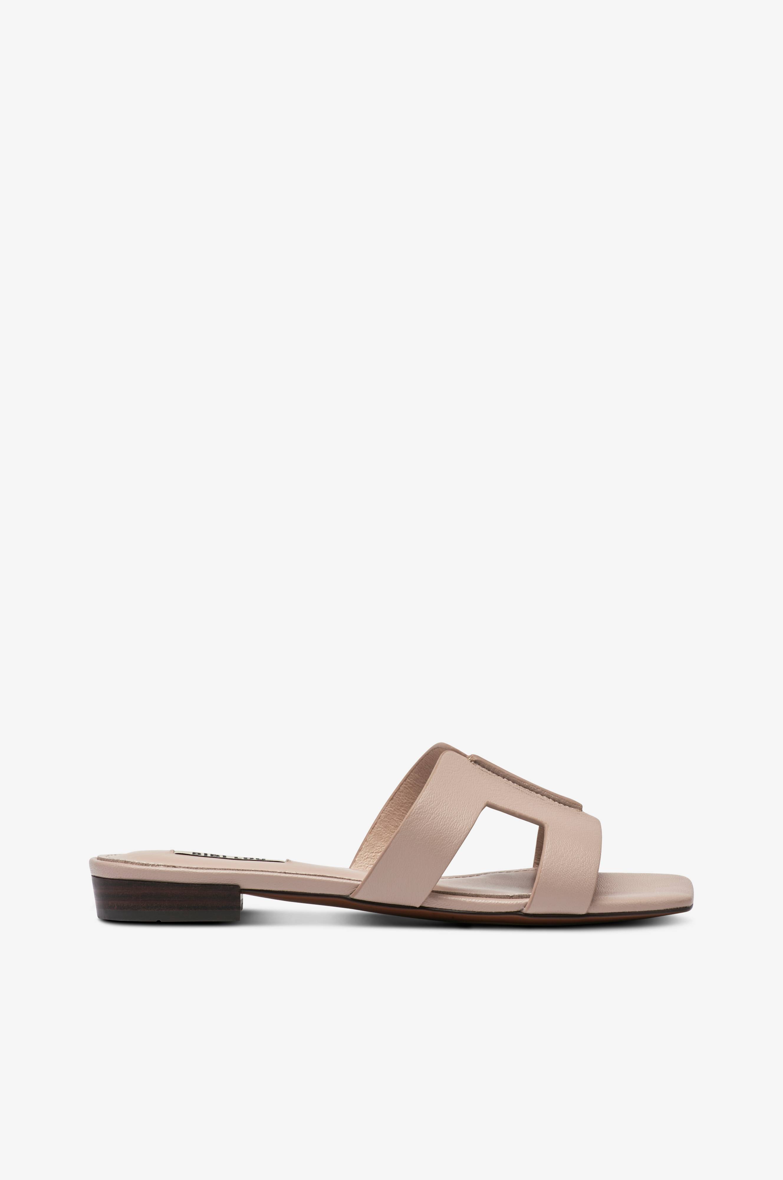 • Sandaler i læder• Bred rem med udskæringer• Firkantet snude