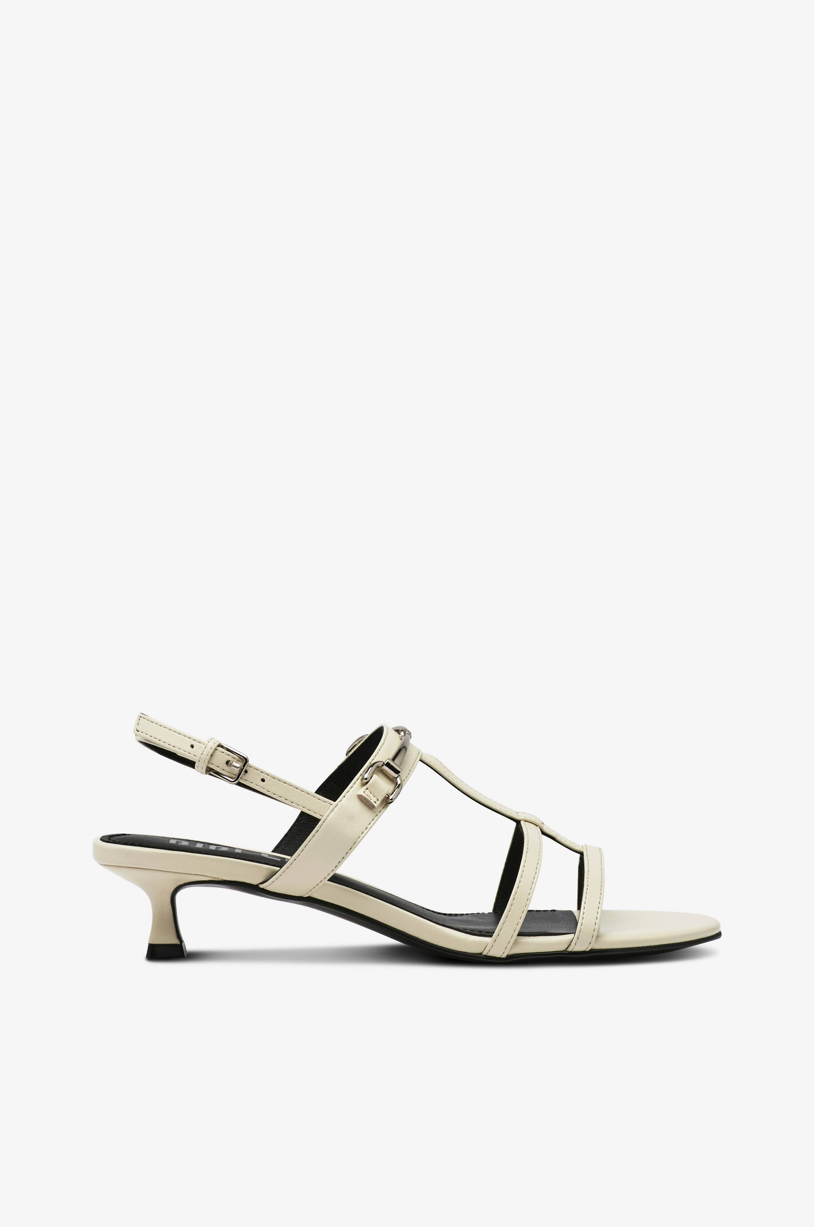 • Sandaler med hæl i læder• Detalje i sølvfarvet, blankt metal over foden• Justérbar ankelkæde• Blød polstret, læderbetrukket indersål• Beklædt kittenhæl• Hælhøjde: 2,5 cm