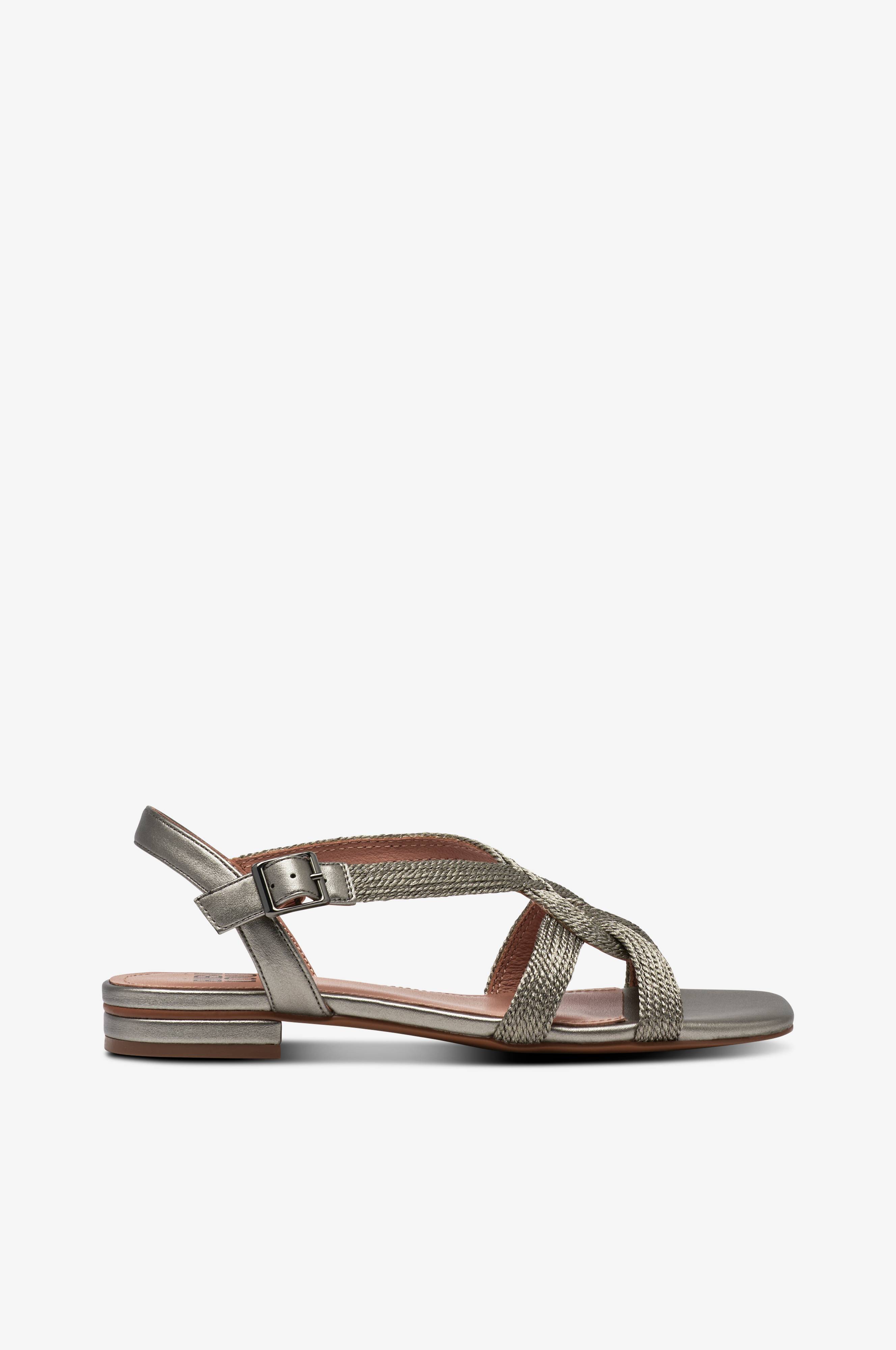 • Remme i imiteret læder med dekorativt snørebånd• Spænde ved anklen