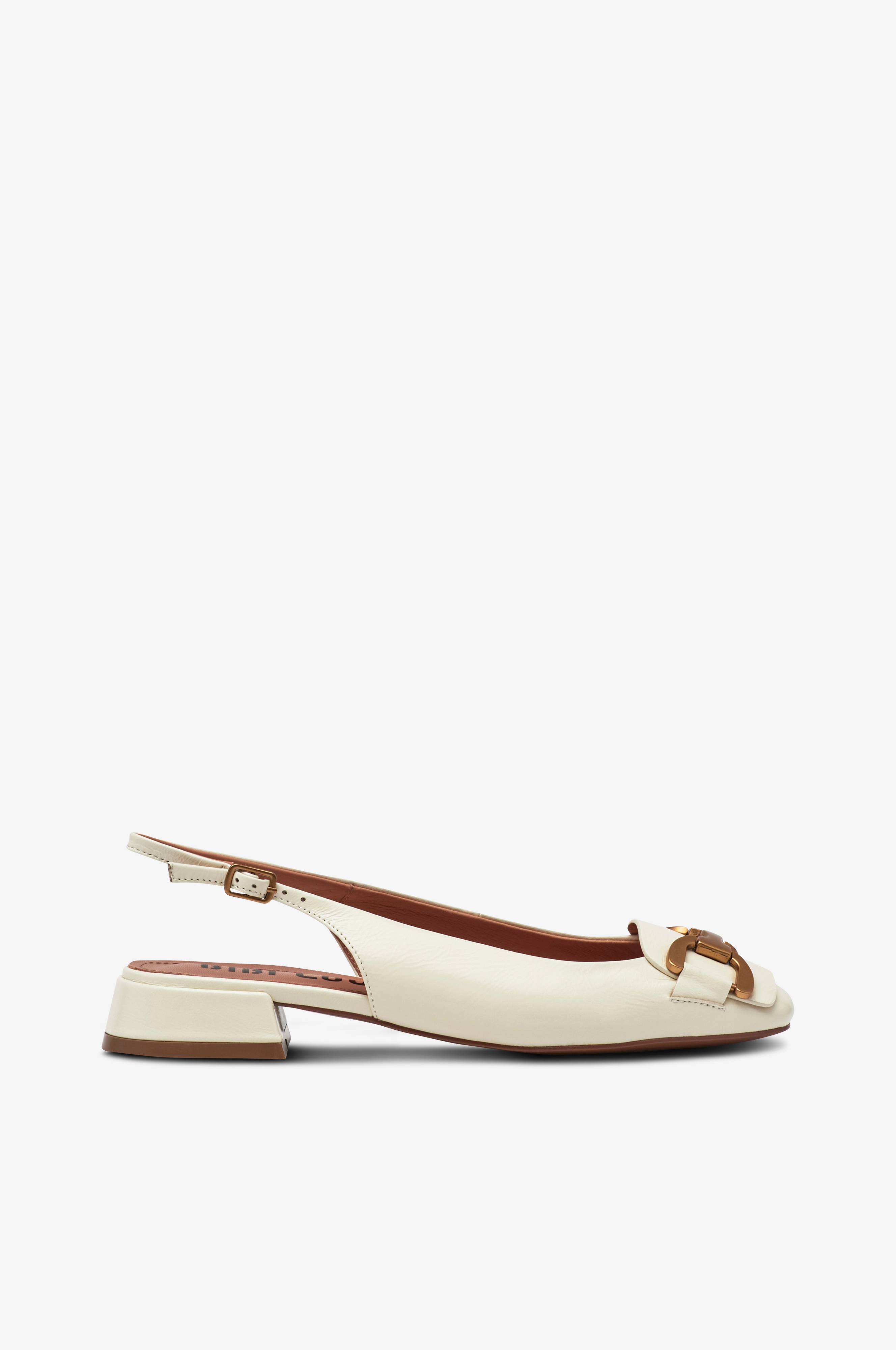 • Glat model i læder• Lige snude med guldfarvet dekoration i metal• Læderforet• Foret indersål• Justérbar hælrem• Beklædt hæl• Hælhøjde: 3 cm