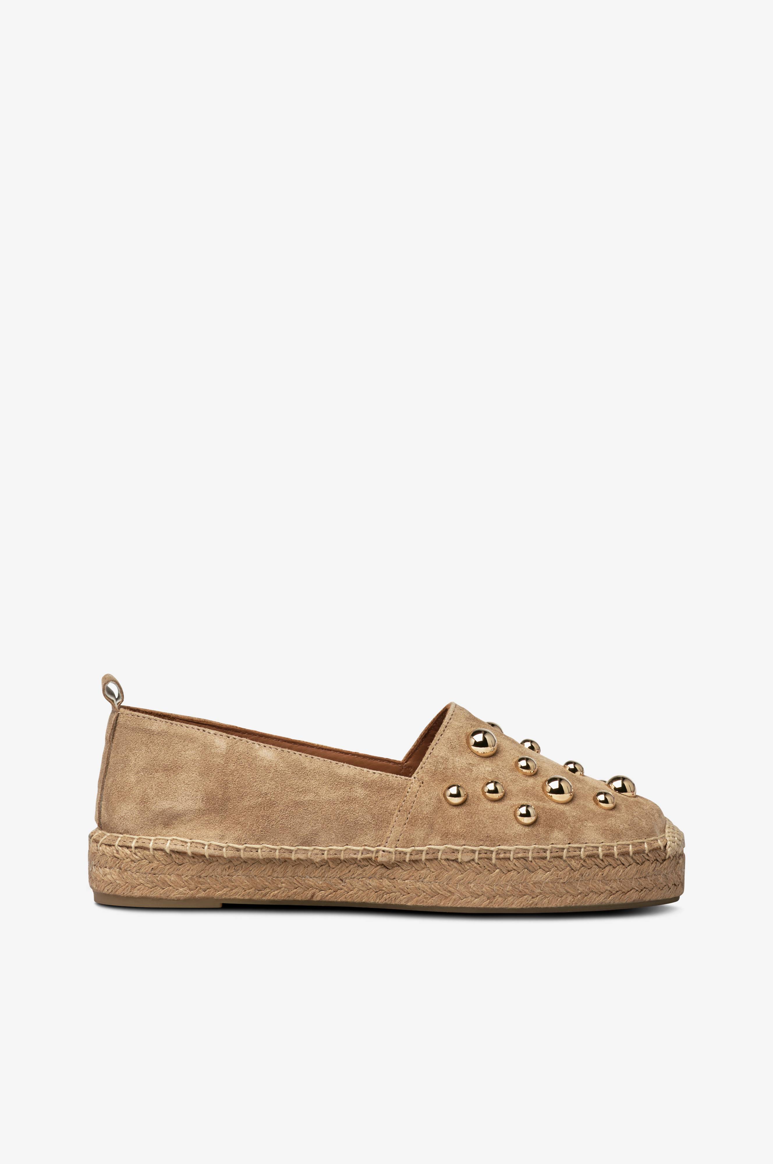 • Lave sko i ruskind med guldfarvede dekorationer• Rebbeklædt sål