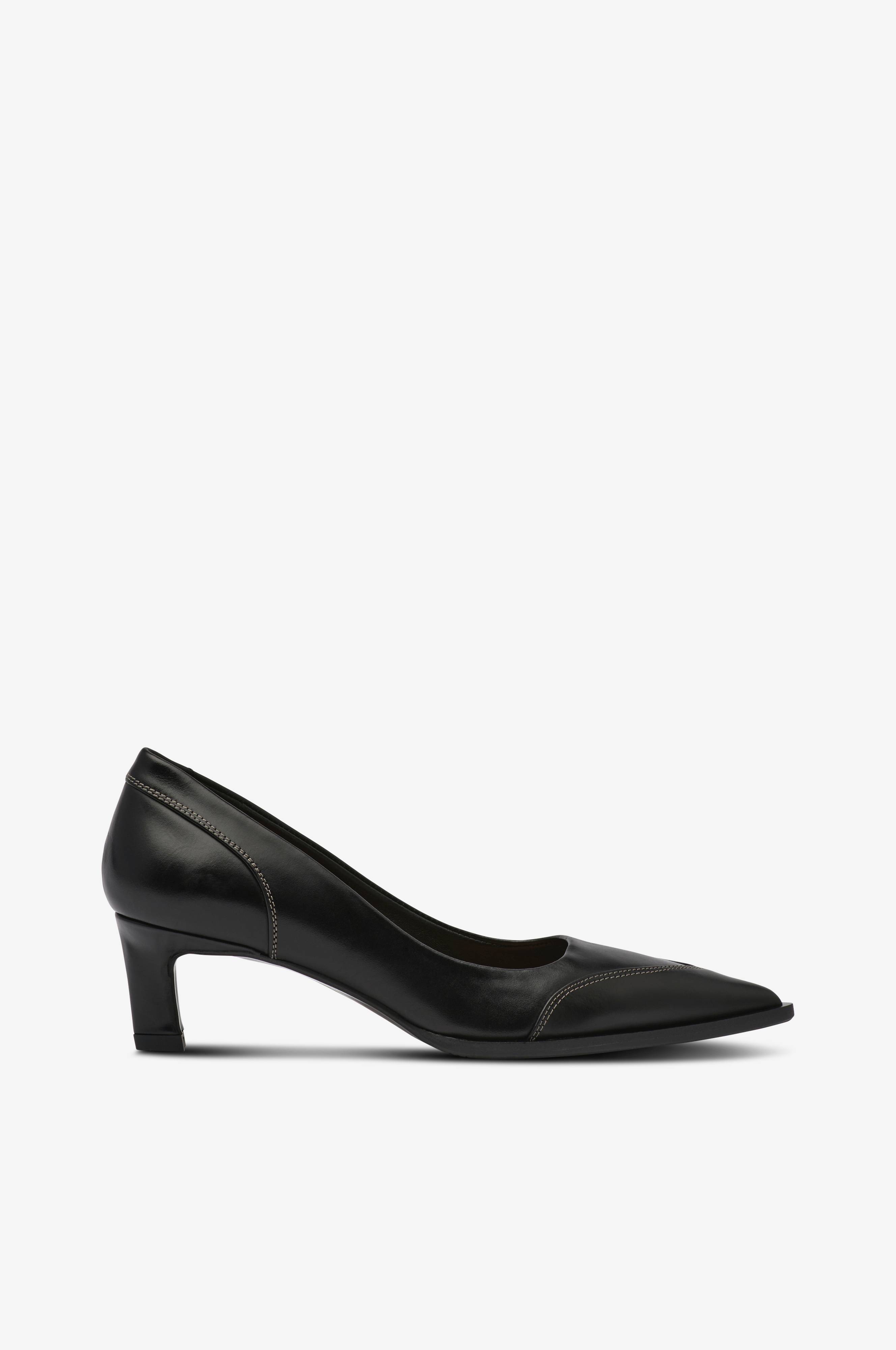 • Model i læder• Spids snude• Dekorativt strikkede sømme• Lav, beklædt hæl• For i læder• Hælhøjde: 5,5 cm