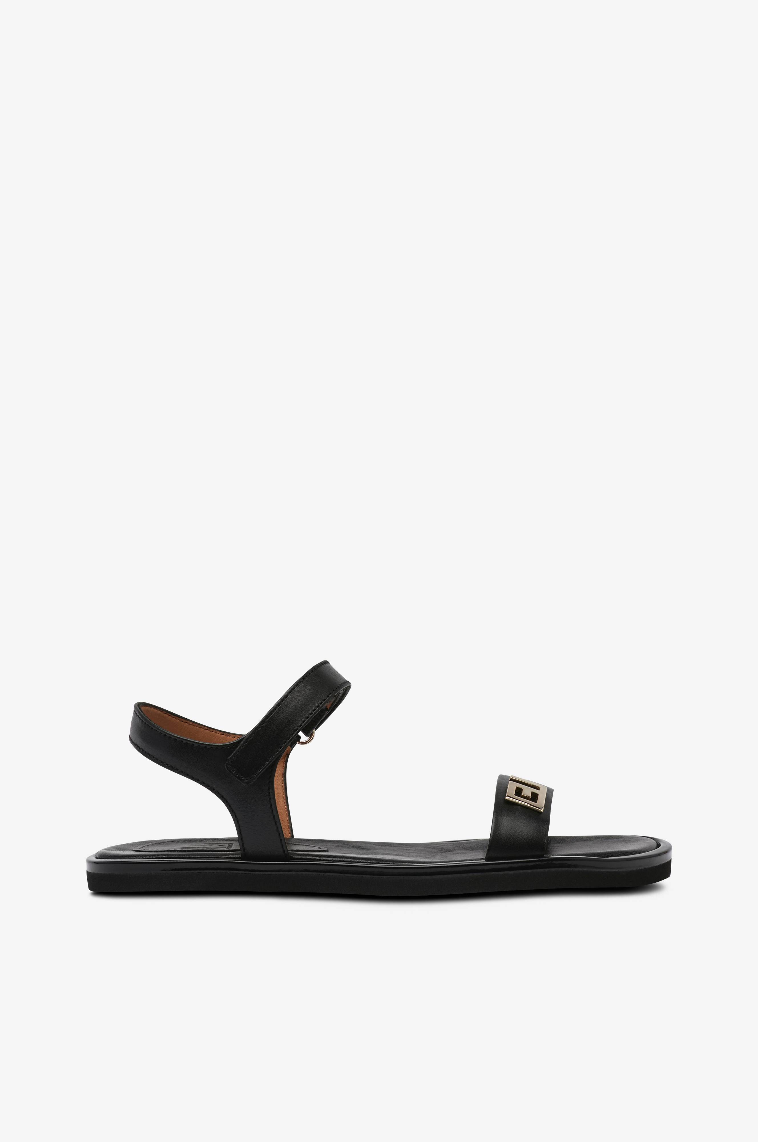 • Remme i læder• Velcrobånd ved anklen• Guldfarvet metallogo foran• Flad sål i EVA